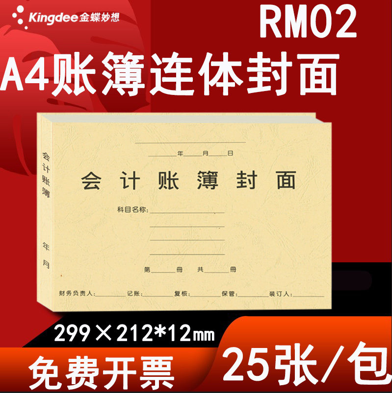 金蝶妙想A4激光总分类账明细账账本连体封面RM02 299*212*12mm金蝶软件会计账册套打A4打印纸封皮账本封面