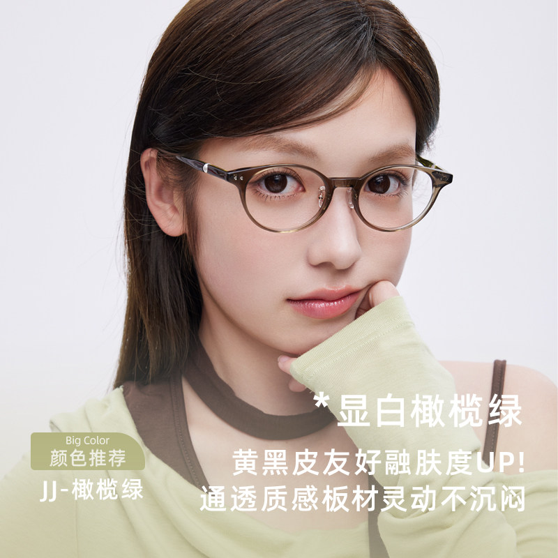 loho冷茶色素颜超轻眼镜女近视可配度数防蓝光大脸高级感眼睛镜框