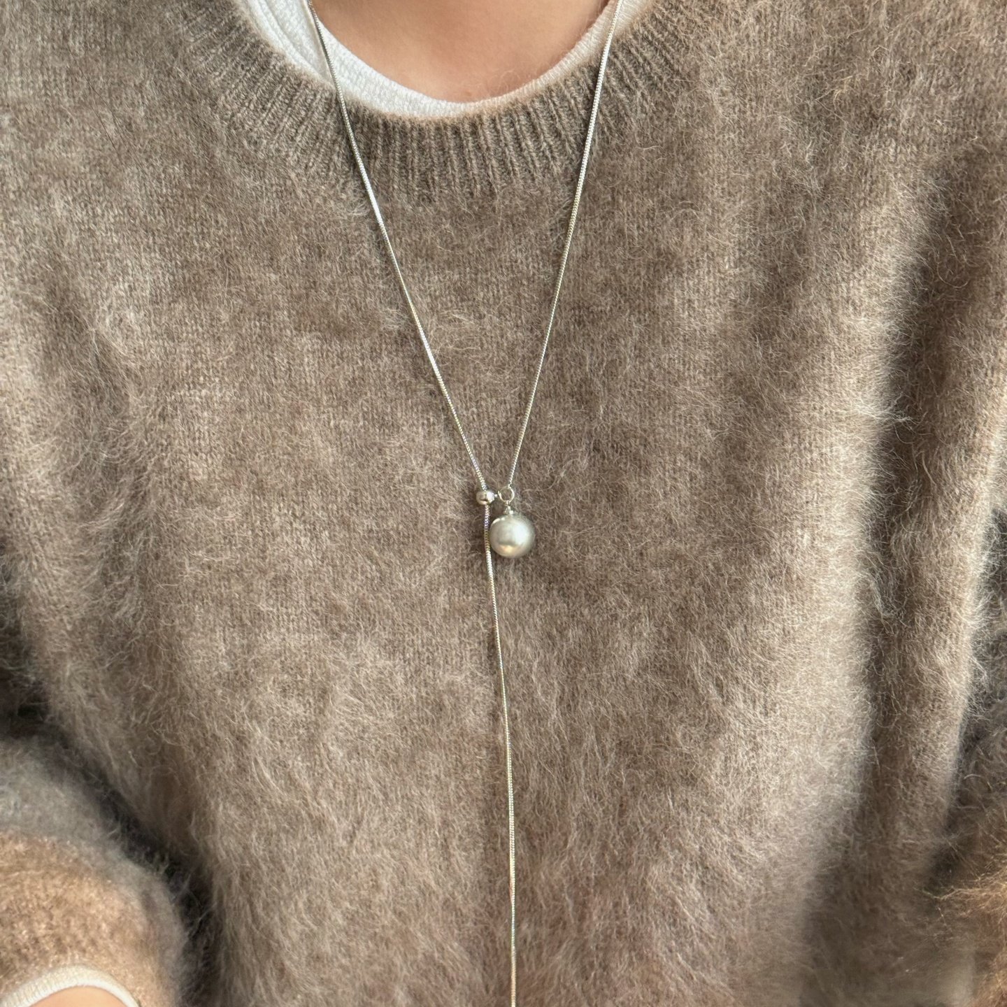 《小灯泡》秋冬美拉德轻奢气质长款大珍珠抽拉蛇骨项链毛衣装饰链