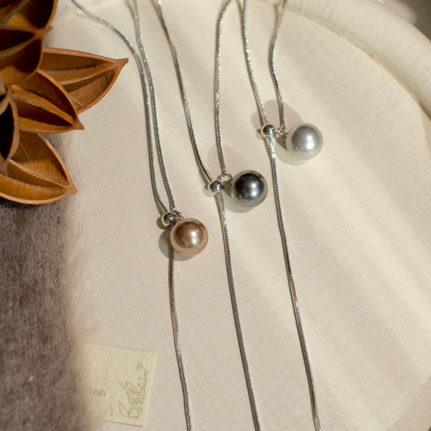施家真多麻灰色珍珠项链颈链轻奢小众毛衣链配饰女款2025新款爆款