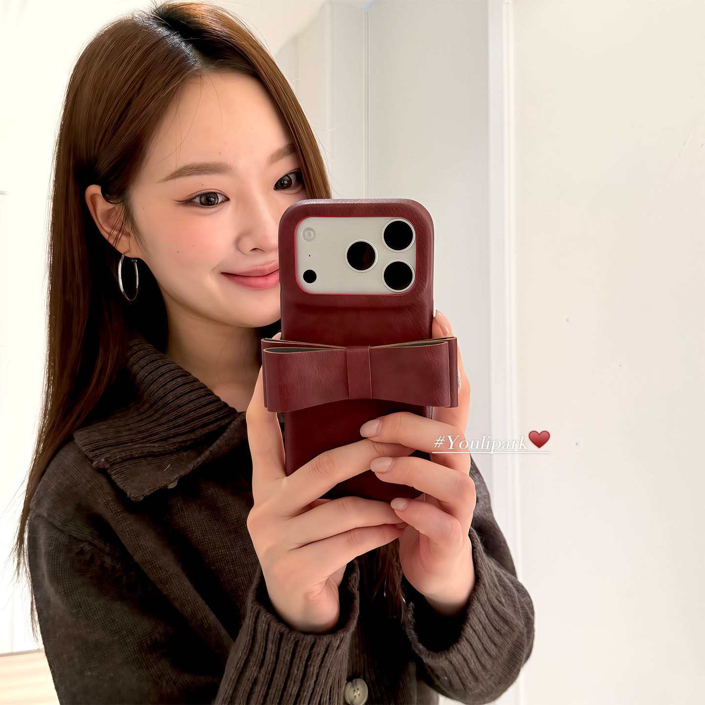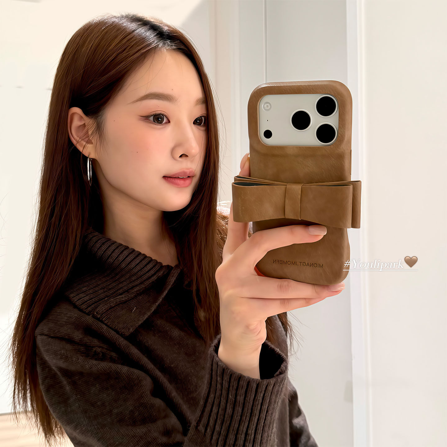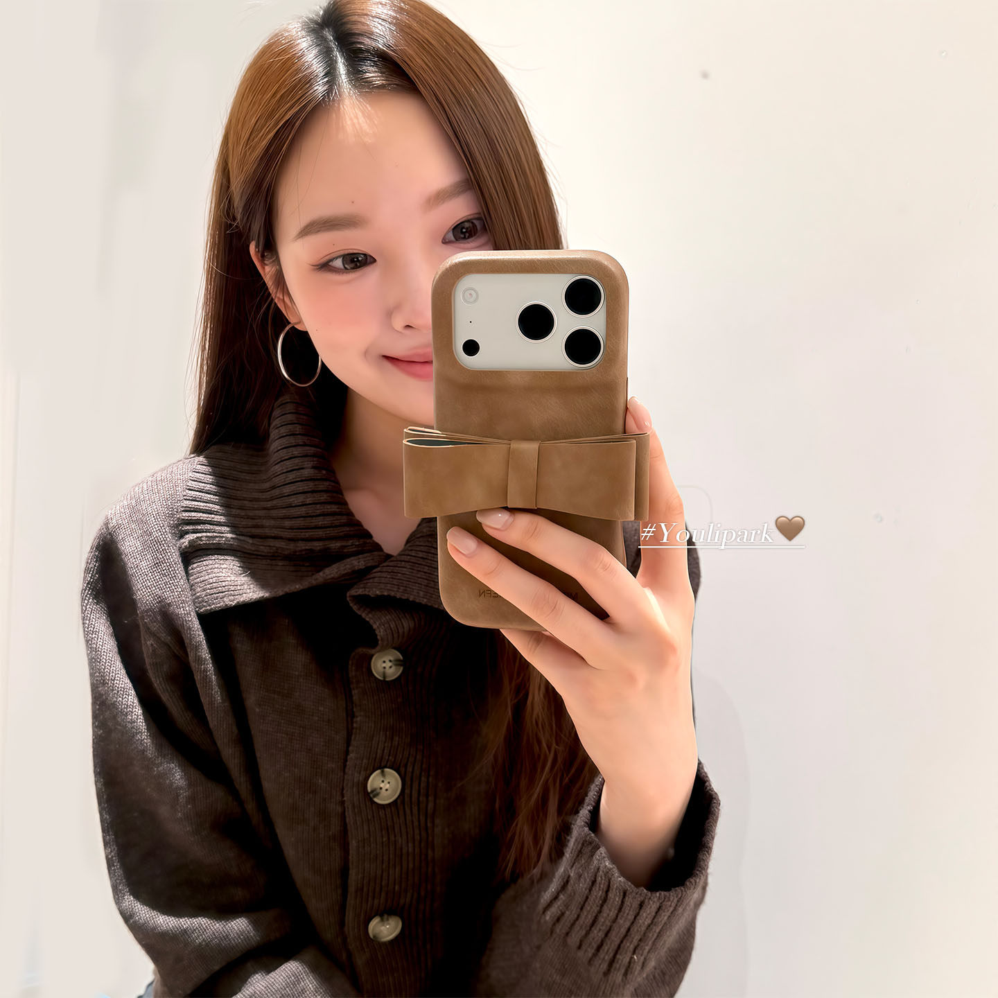 由里公园ins秋冬美拉德色系高级感蝴蝶结17适用17pro苹果17ProMax手机壳iPhone16全包14皮质16Promax保护套女