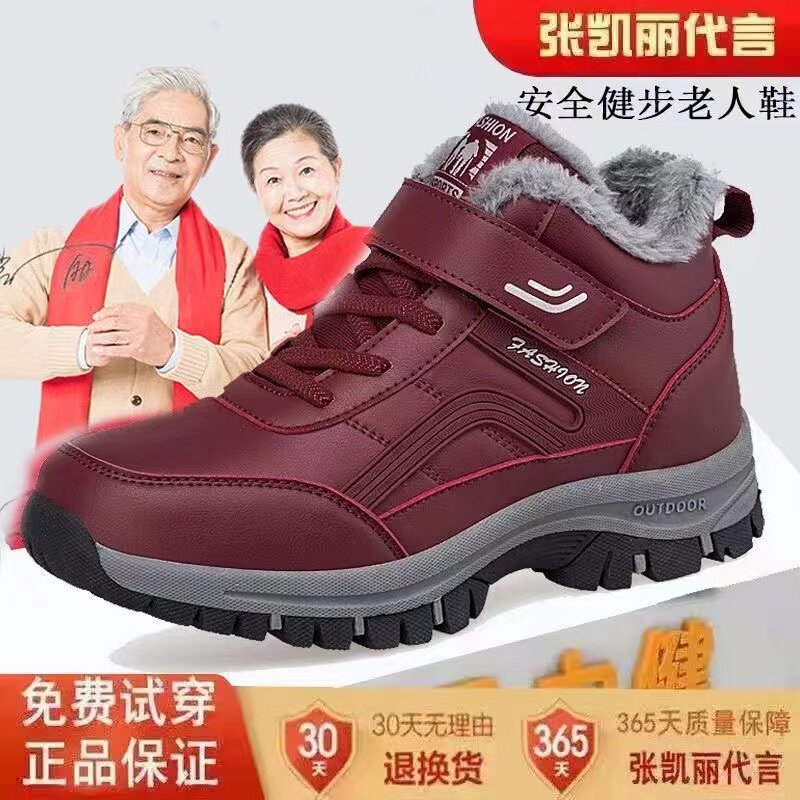 加绒加厚老人鞋女冬季防滑运动鞋中老年妈妈保暖羊毛棉鞋老年人