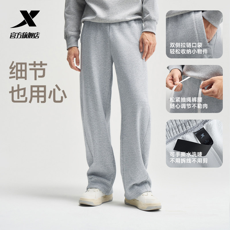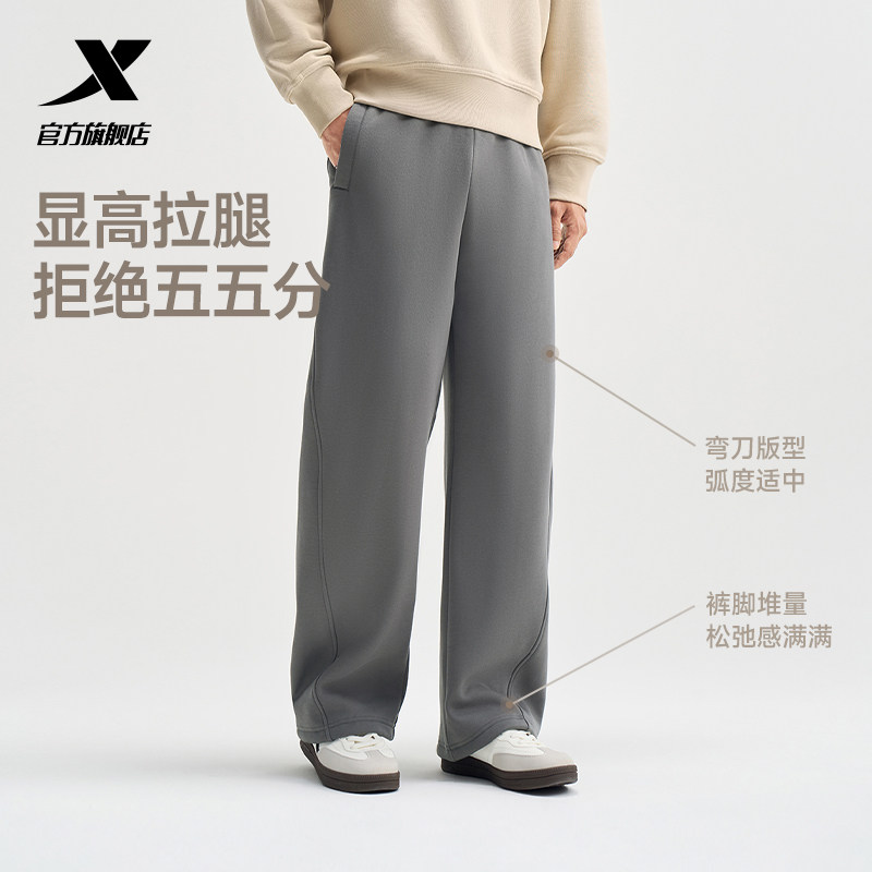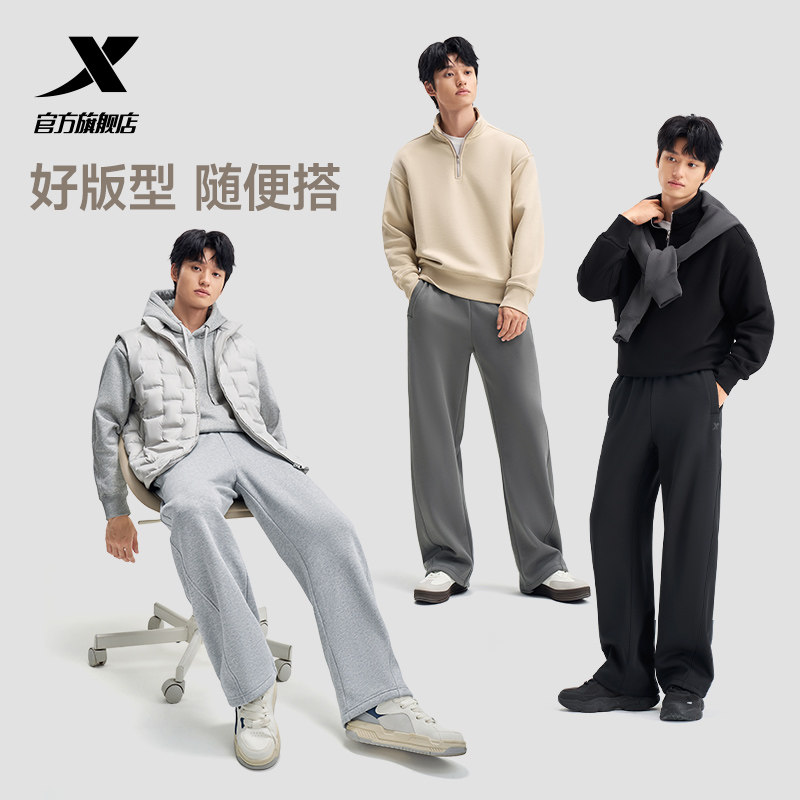 特步本命裤丨阔腿直筒裤冬季新款加绒卫裤休闲弯刀裤男子运动长裤