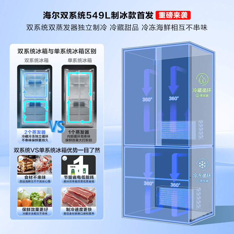 【双系统】海尔小红花549L法式多开门大容量制冰风冷无霜家用冰箱