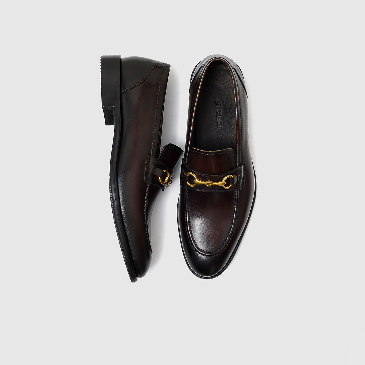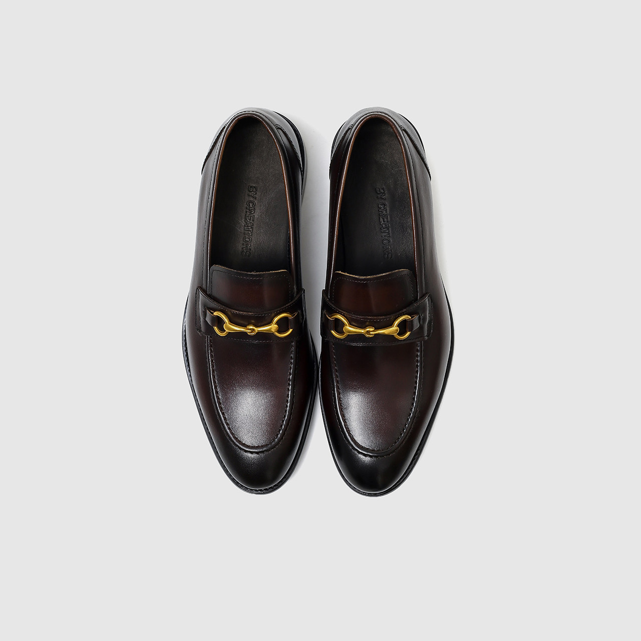 柏品咖啡色乐福鞋真皮鞋男士马衔扣商务英伦休闲正装一脚蹬男鞋