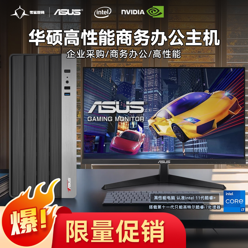 华硕高配PB04酷睿i7/i5/i3 电脑主机台式机办公直播企业客服剪辑家用独显整机全套电竞游戏台式组装DIY组装机