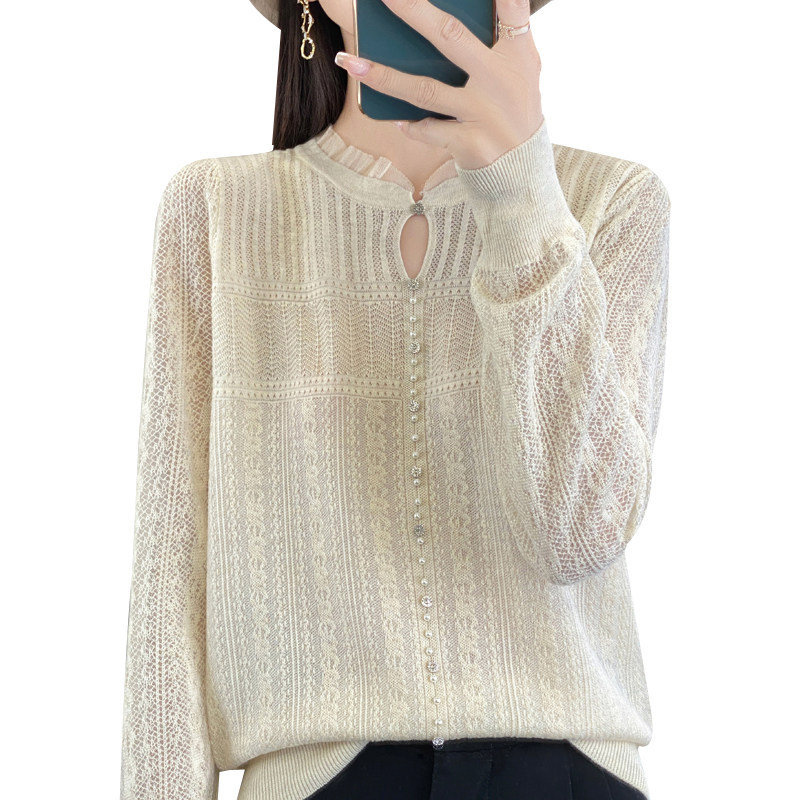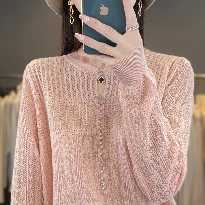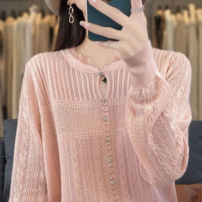 撤柜撤标(A)打底衫女春秋大码女装春装薄款针织钉珠上衣洋气小衫