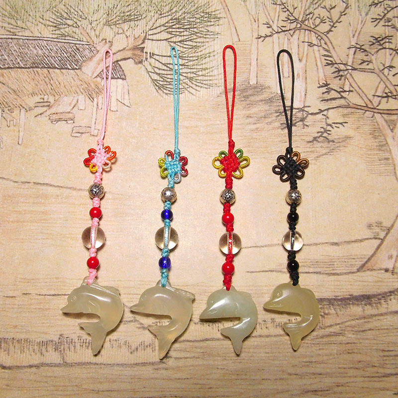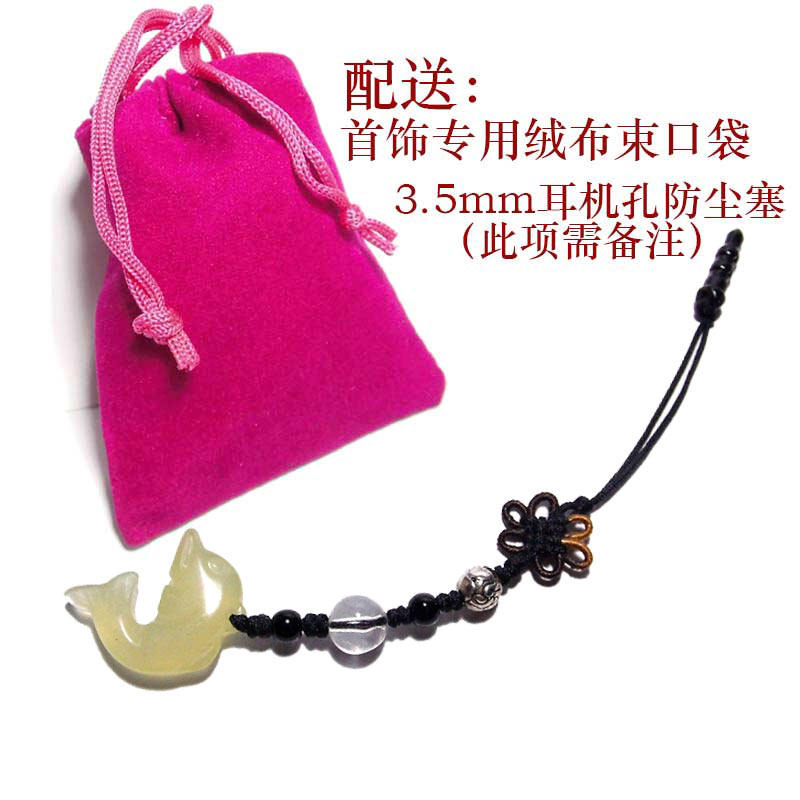 天然岫玉石海豚鱼手机链包吊坠古风U盘挂绳男女短款钥匙链扣包挂