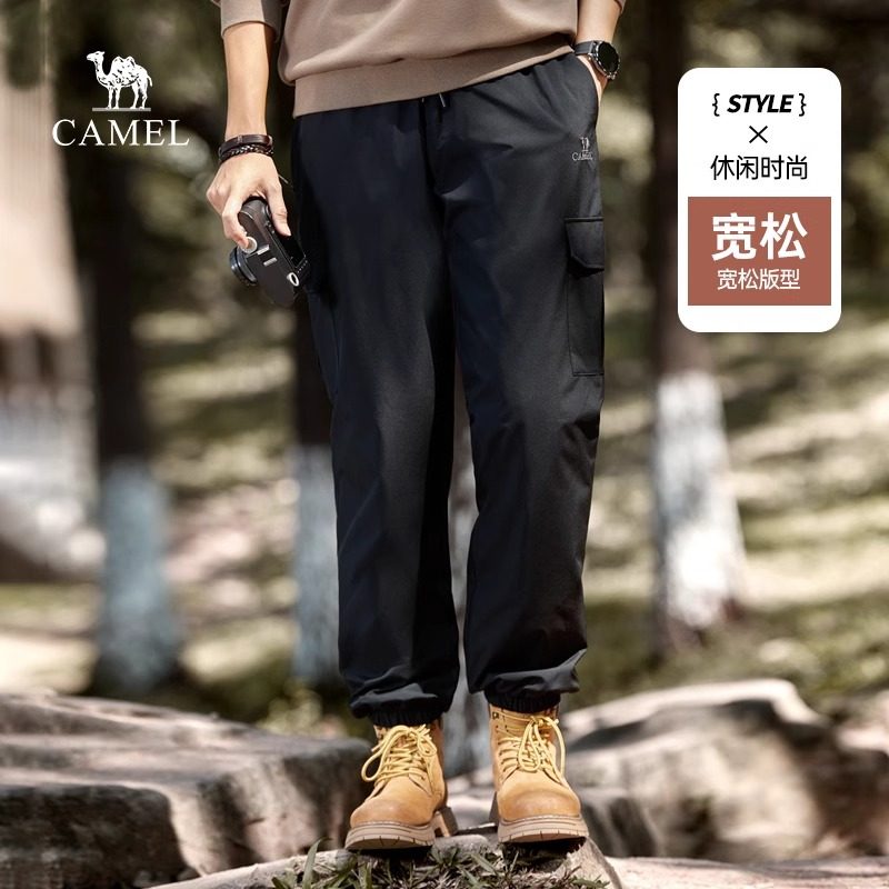 骆驼男装羽绒裤男冬季2025新款加绒加厚工装休闲束脚防水运动裤男