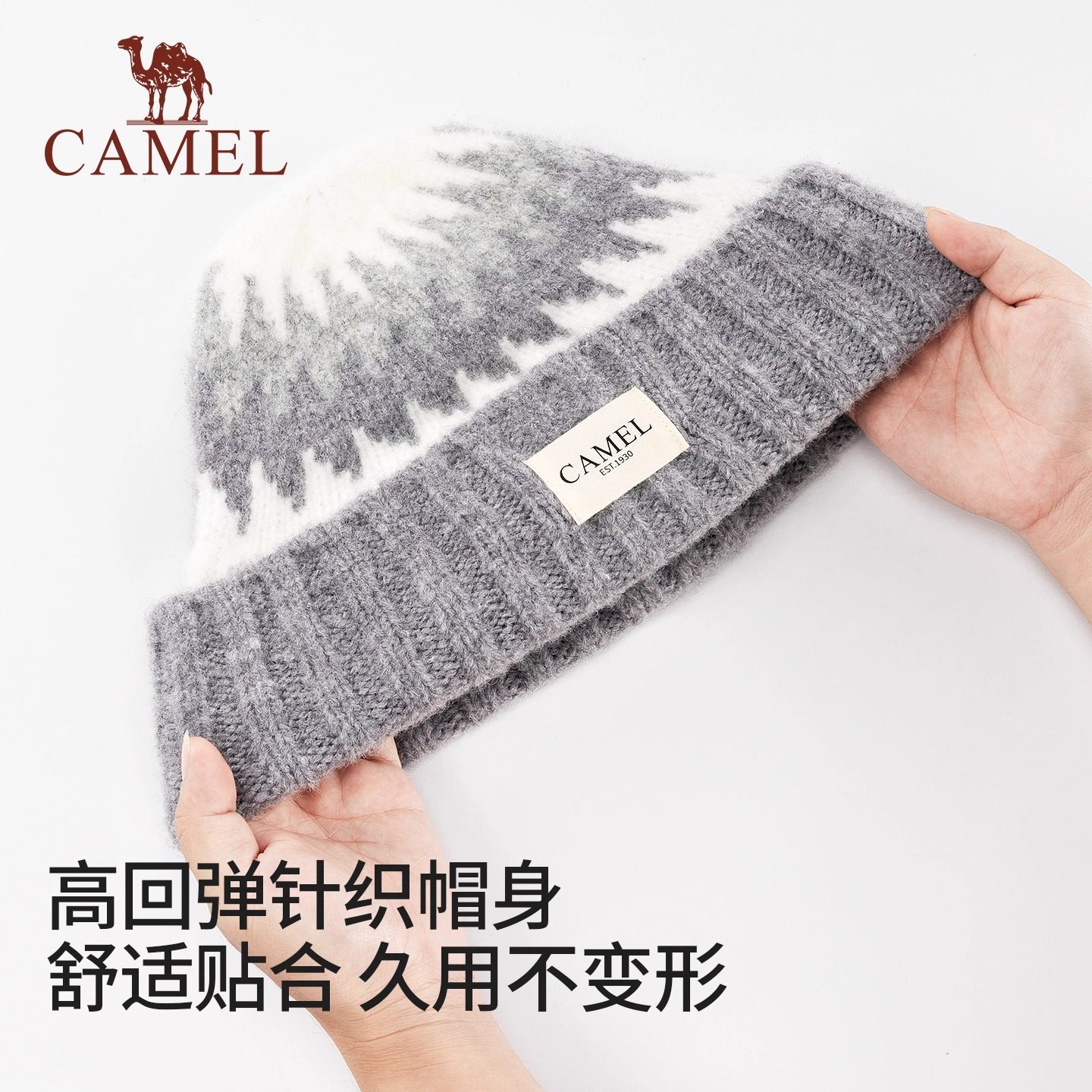 骆驼费尔岛风圣诞2025年冬季新款女针织帽保暖大头围防风毛线帽子