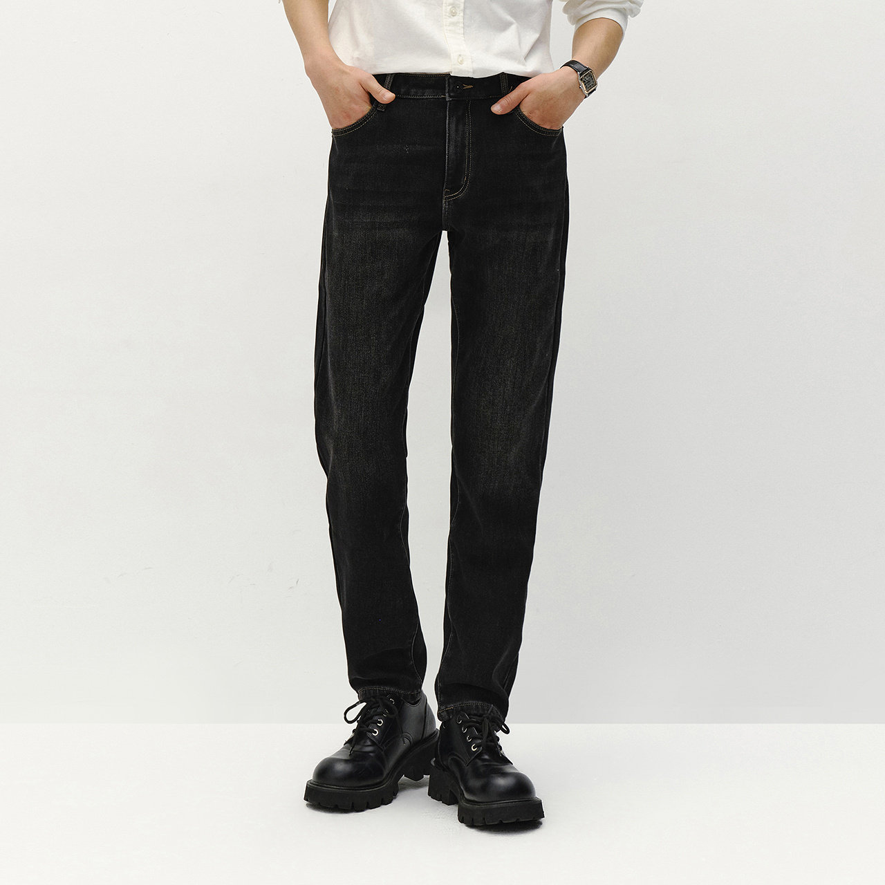 森柔|森马牛仔裤男冬季加绒弹力小脚裤复古简约通勤长裤显瘦显高