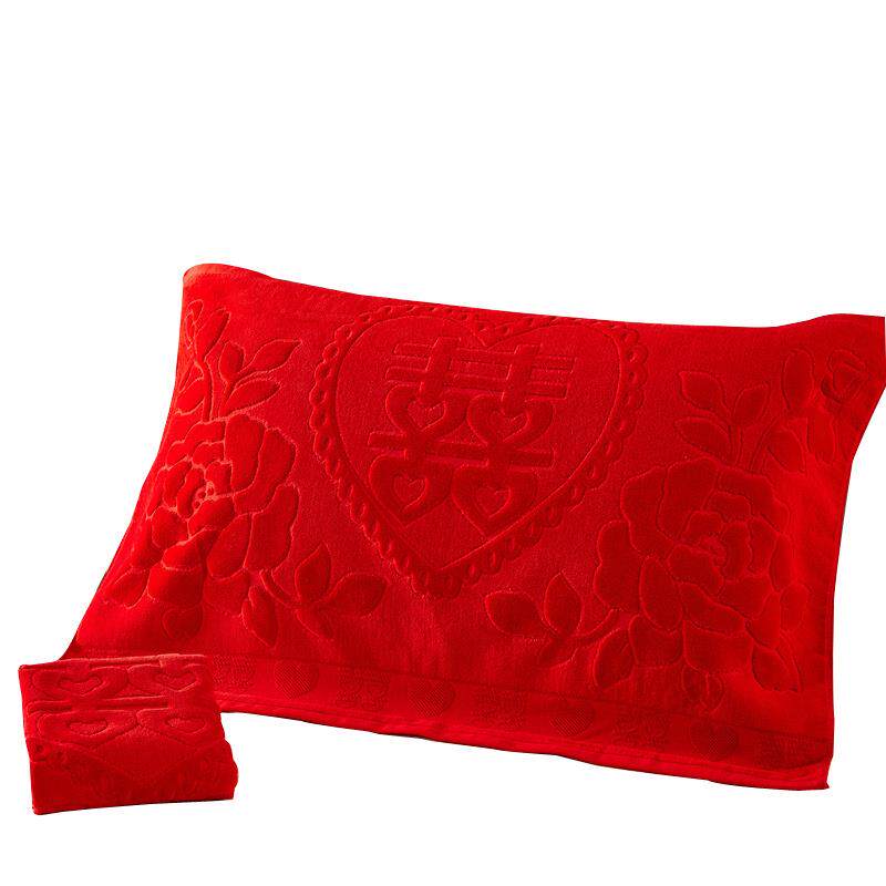 枕巾纯棉一对结婚大红色加厚加大单人婚庆喜庆不掉色盖巾