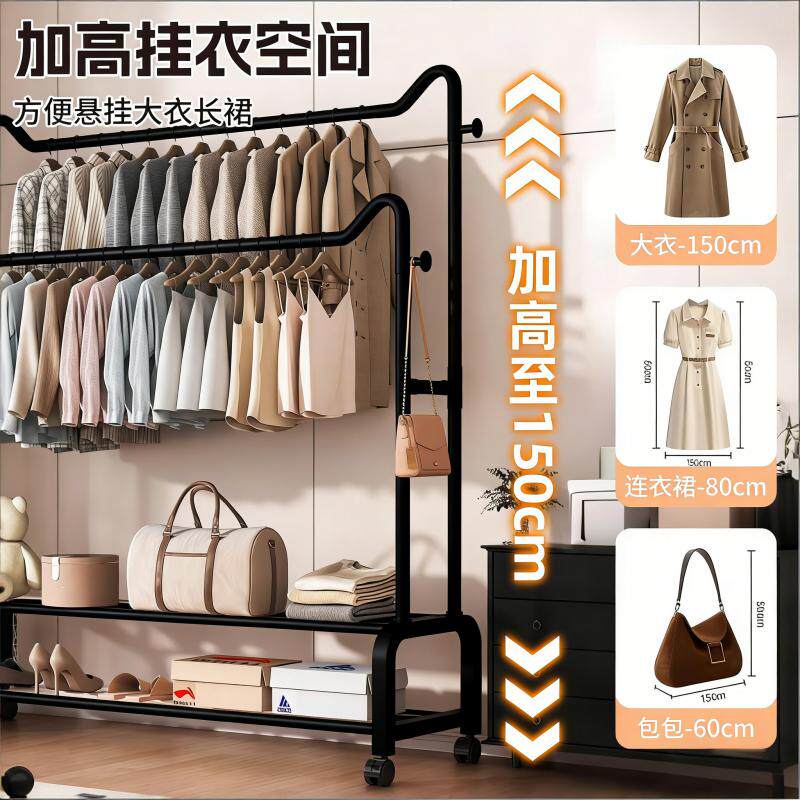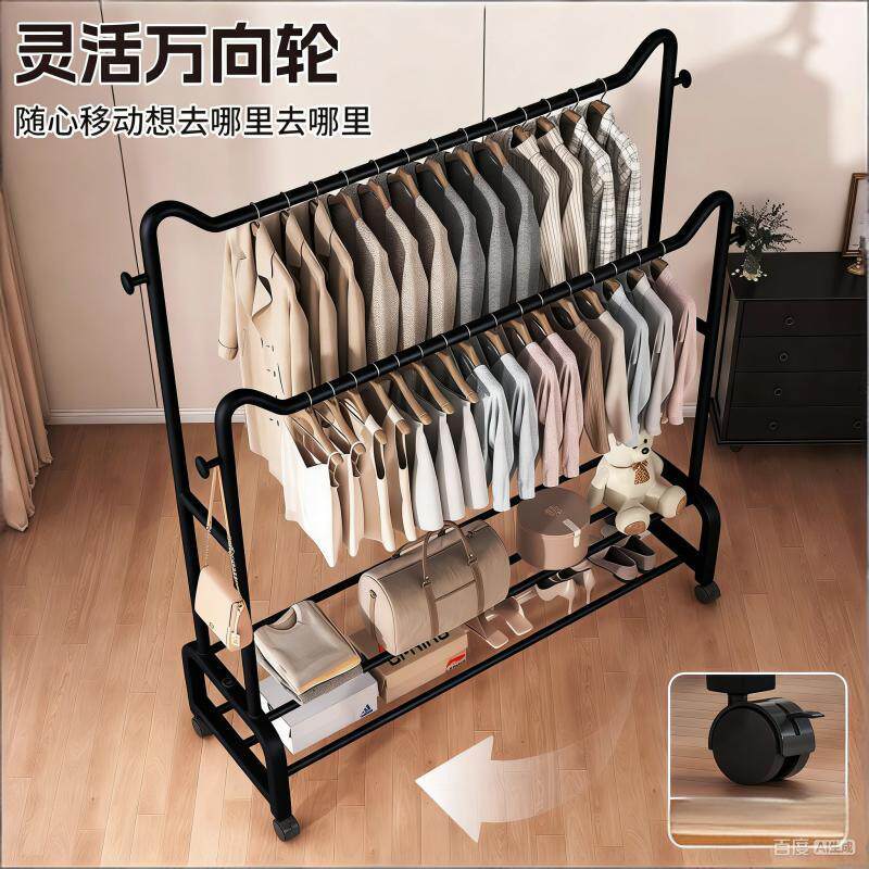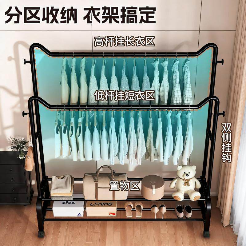 简易衣架家用卧室落地双杆挂衣服架子室内阳台衣杆架可移动衣帽架