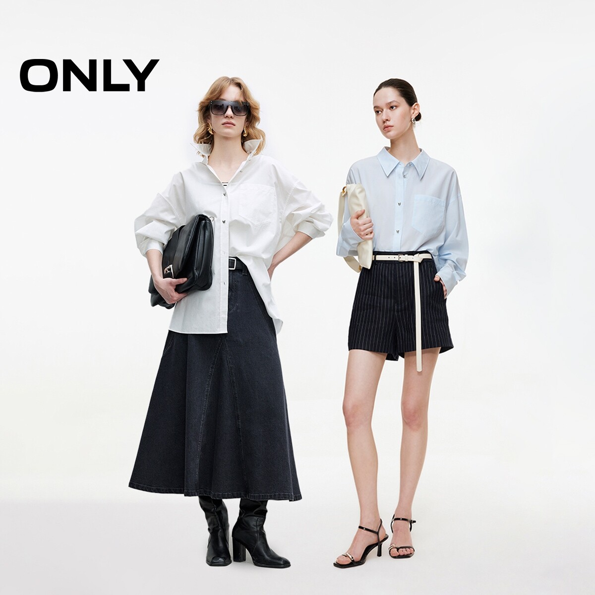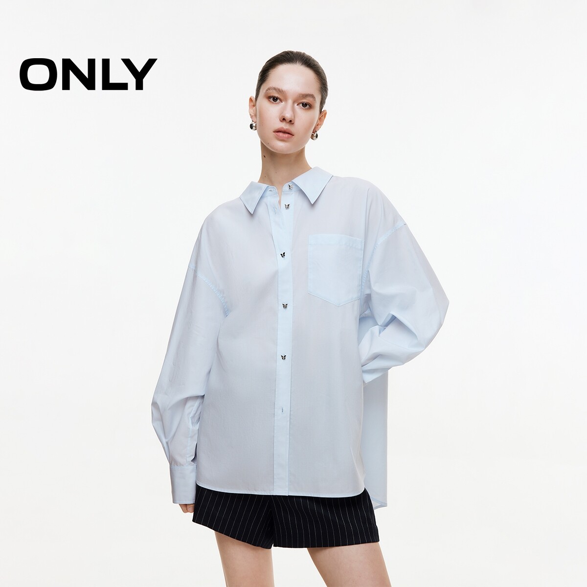 ONLY2026夏季新款含莱赛尔淡人立体蝴蝶结镂空宽松长袖衬衫上衣女