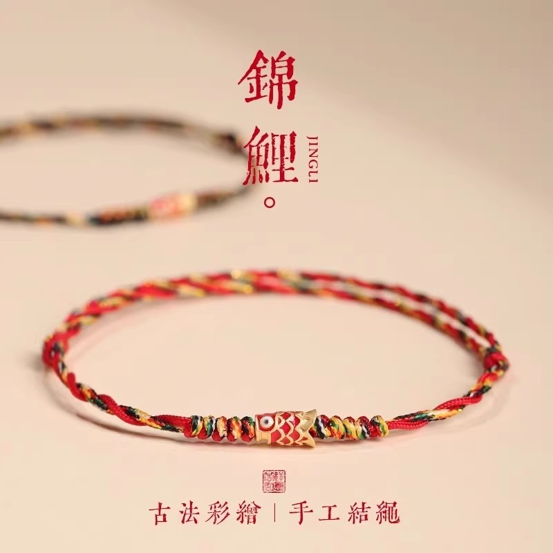 五彩好运锦鲤红手绳红绳手链女款端午节编织手绳男款脚链上岸礼物