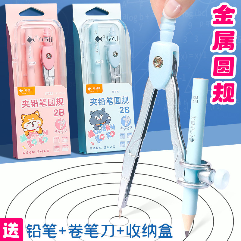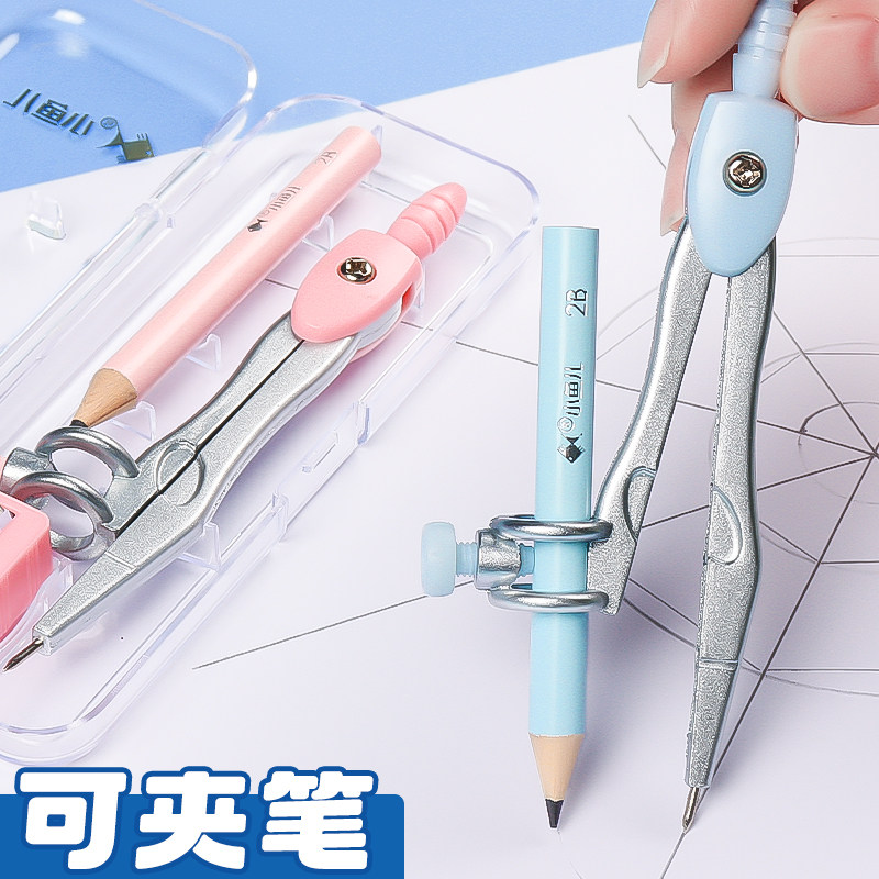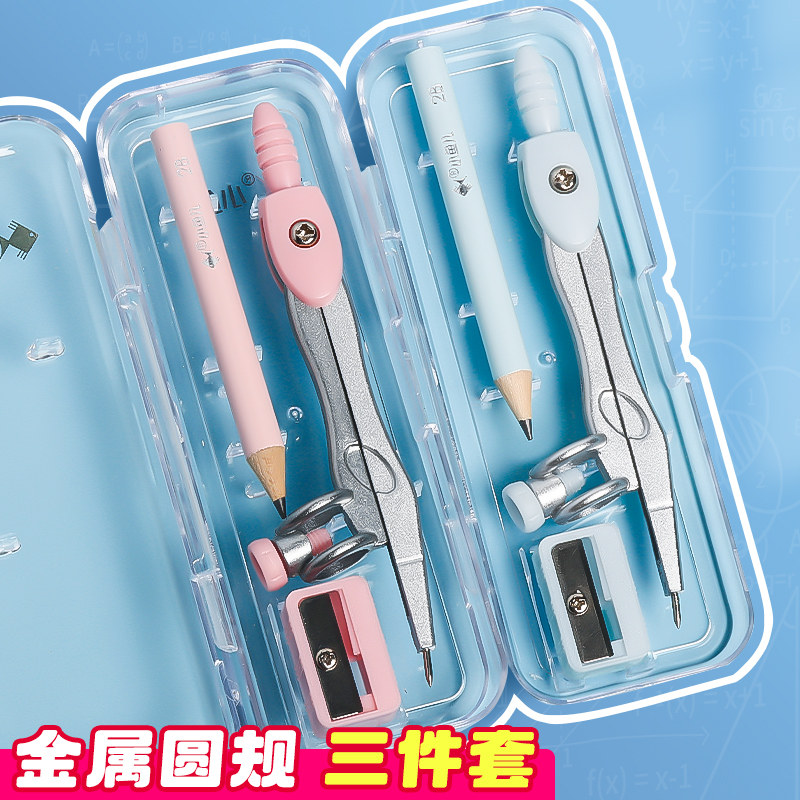 小学生圆规绘图制图工具夹笔款金属圆规套装初中生尺规专用品