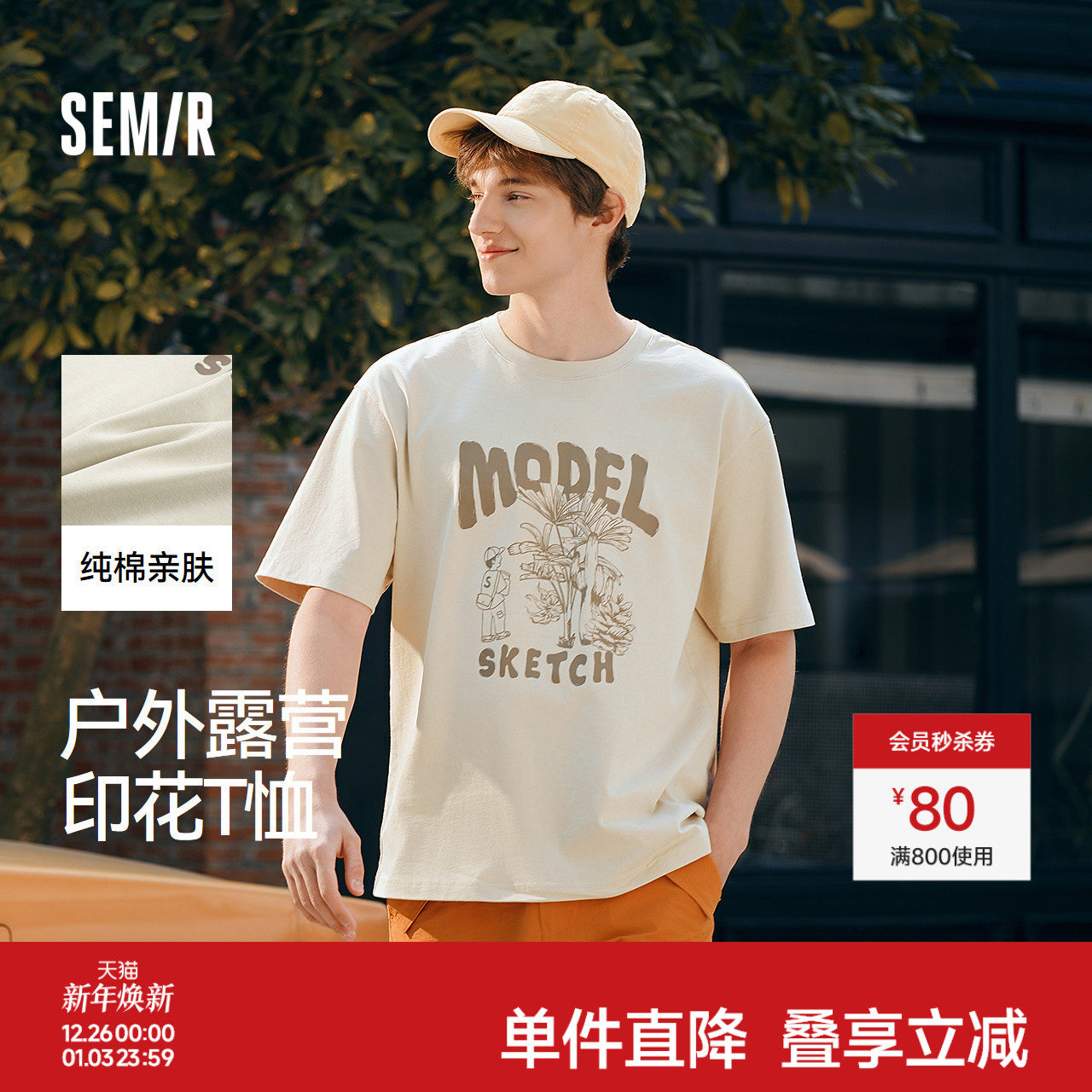 森马短袖T恤男纯棉内搭宽松夏季户外露营大图案印花上衣潮流青年
