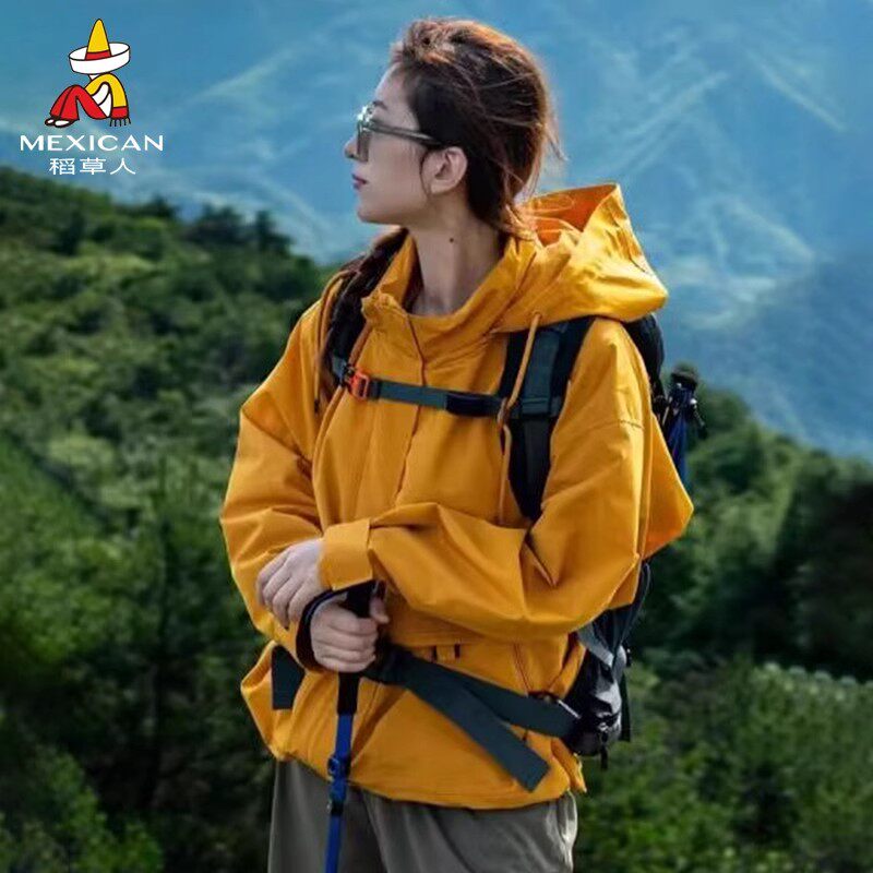 【限时折扣】稻草人黄奕玫同款三合一冲锋衣女工装裤连帽夹克外套