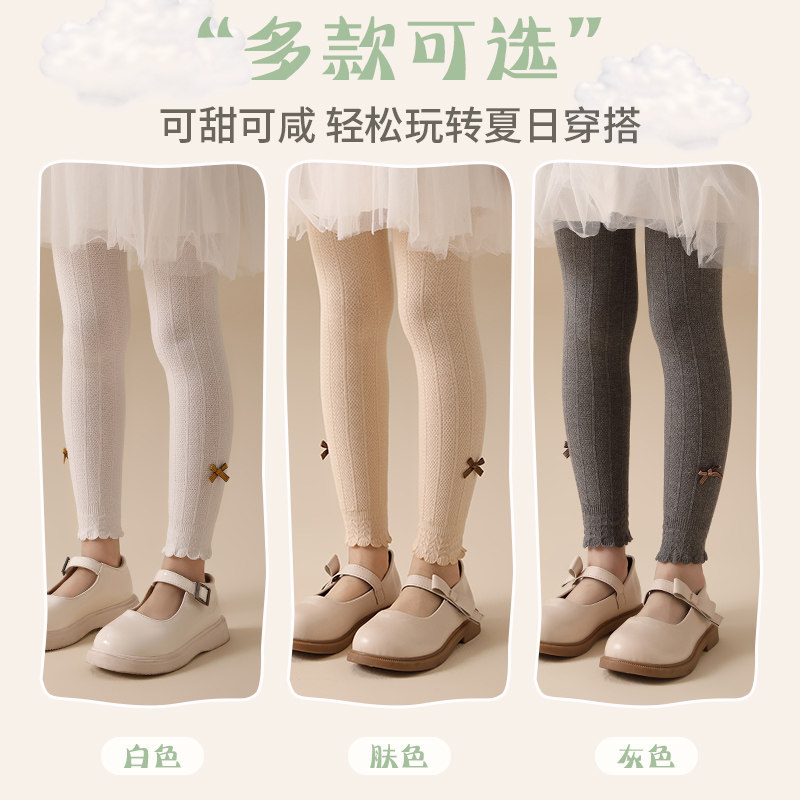 女童打底裤夏季薄款透气防蚊打底袜外穿白色春秋九分连裤袜不连脚