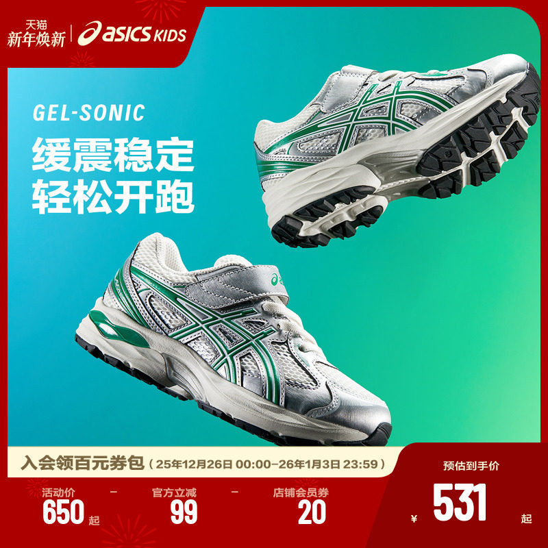ASICS/亚瑟士童鞋2025新款缓冲运动跑步鞋男女童回弹运动鞋SONIC