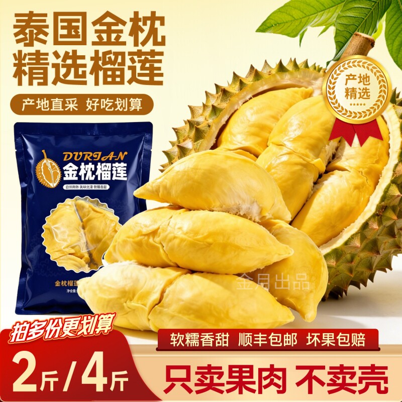 泰国金枕榴莲肉2斤冷冻果肉新鲜去壳带核速冻进口水果树熟商用6斤