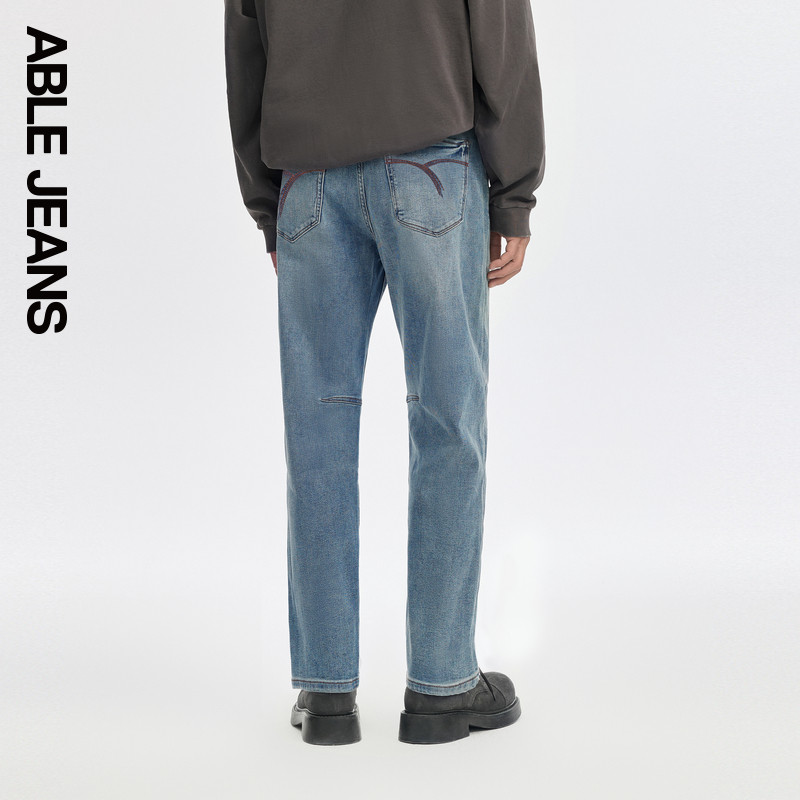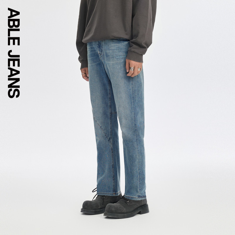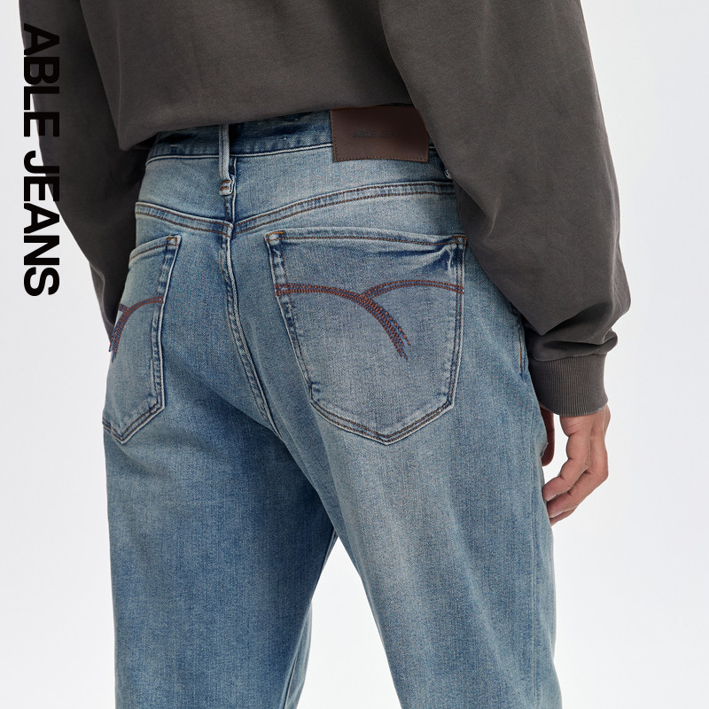 ABLE JEANS【立体锥形裤】新款男士复古工装蓝百搭小脚牛仔裤