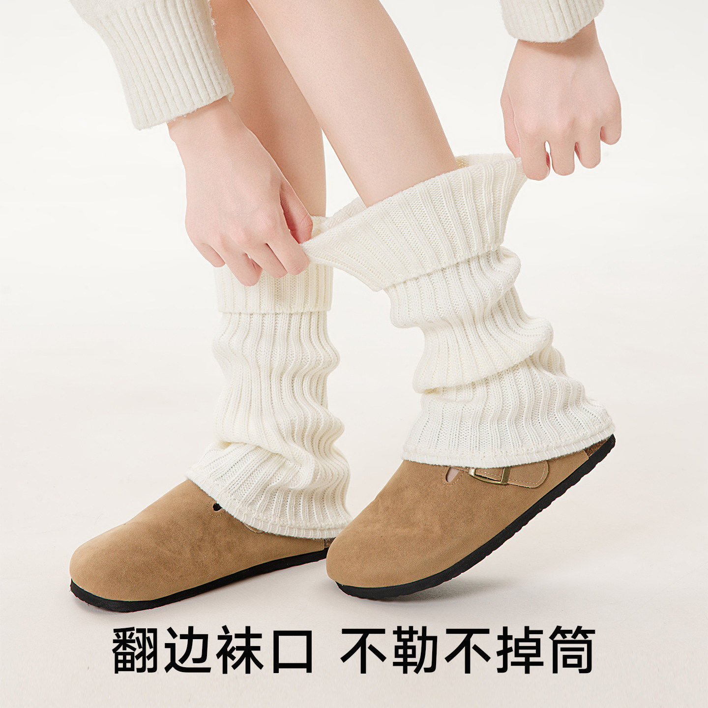 秋冬女款针织保暖过膝堆堆袜套辣妹显瘦小腿袜套少女y2k袜子白色
