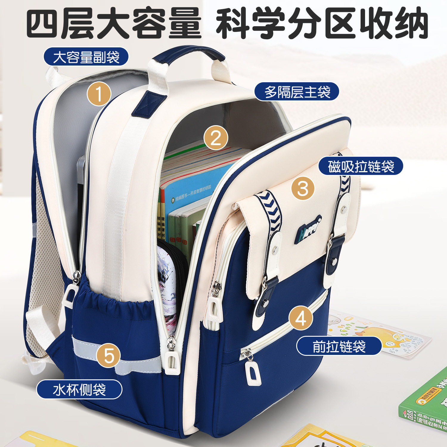 得力学院风英伦小学生书包护脊背包一三到六年级女孩2026年双肩包开学大容量超轻男孩防水书包开学礼物