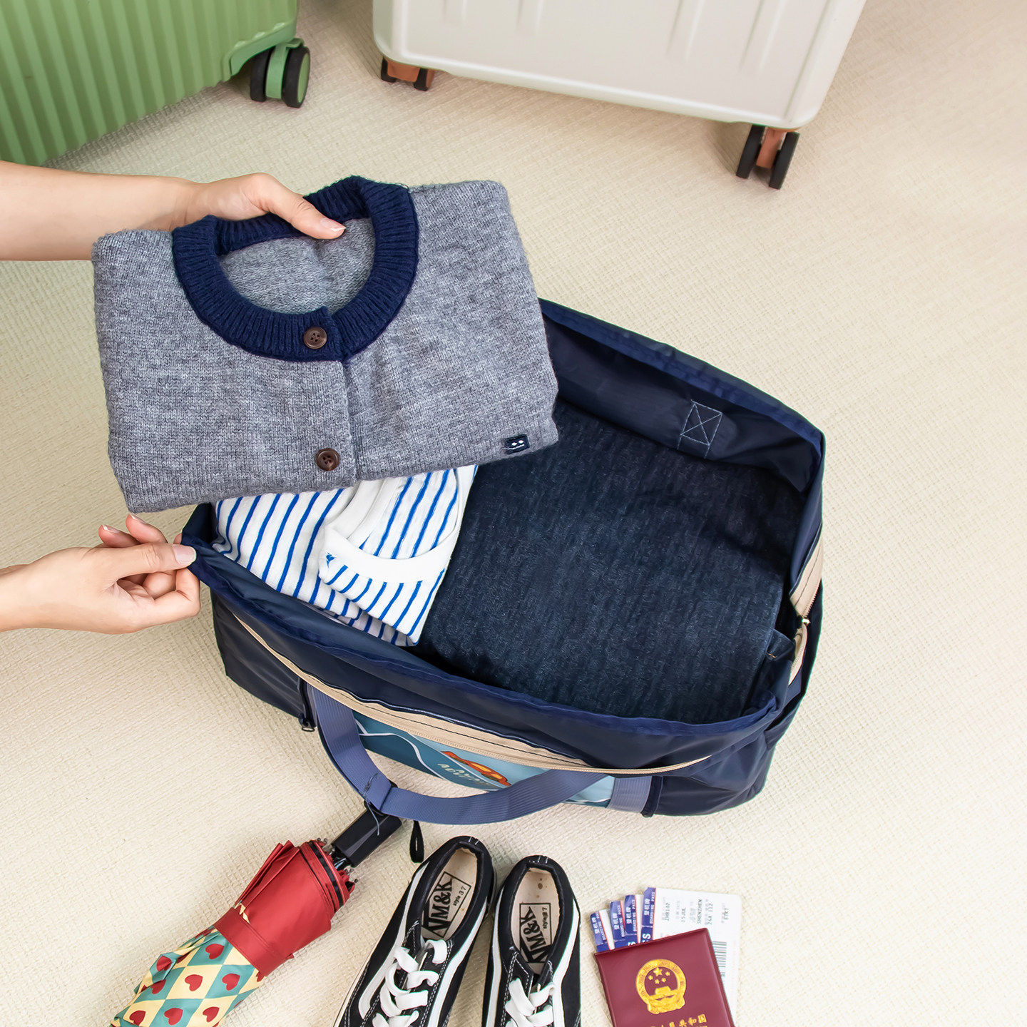 大容量手提短途登机旅行包女学生住校拉杆行李包轻便待产包收纳袋