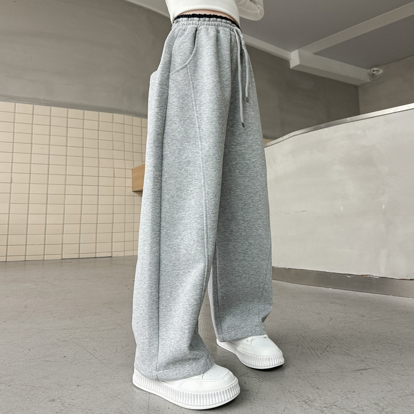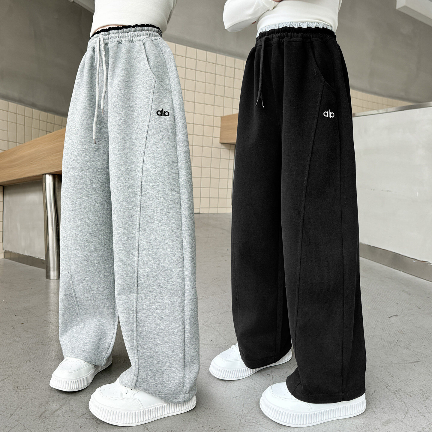 女童裤子秋冬款2025新款儿童运动裤女孩大童秋装阔腿裤初中生加绒