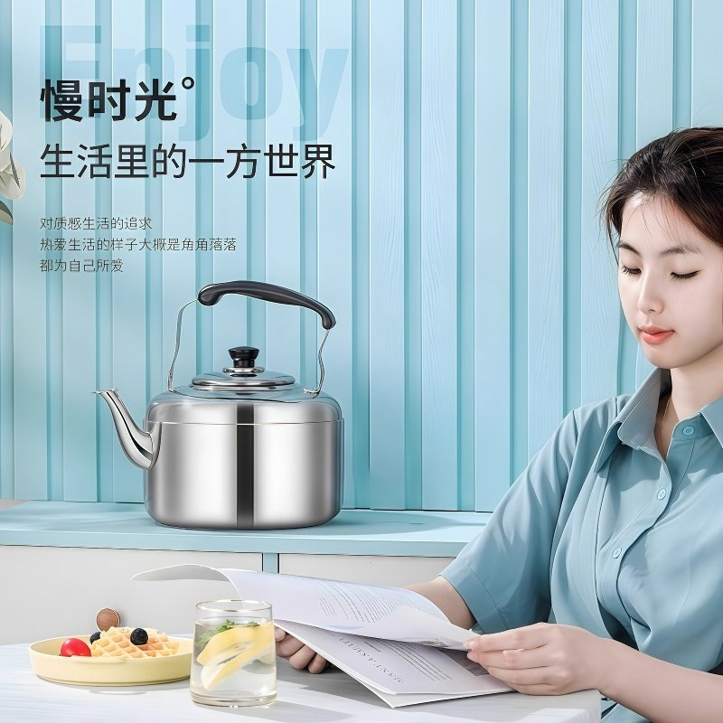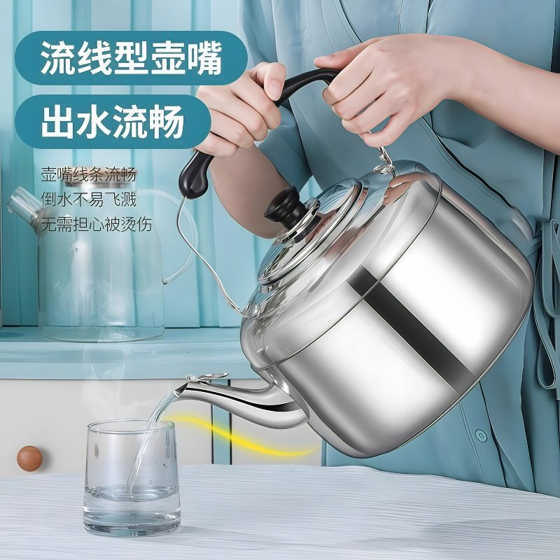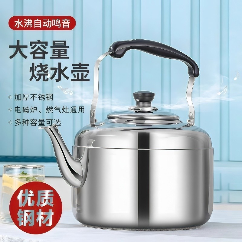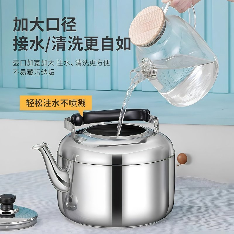 厨房大容量烧水壶家用鸣音壶商用多功能304不锈钢鸣笛明火开水壶
