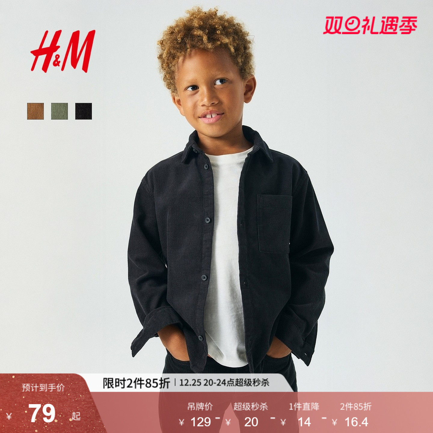HM童装儿童男童衬衫2025冬季新款棉质灯芯绒保暖长袖衬衣1295759