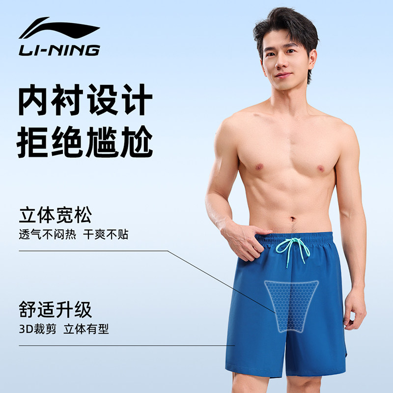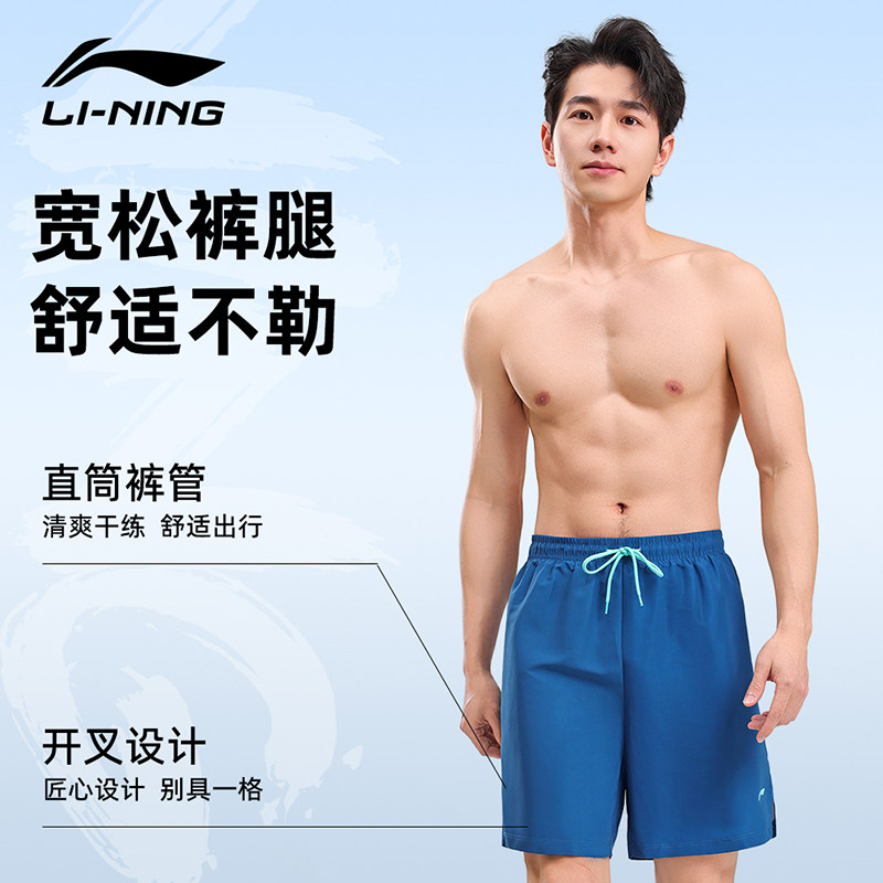 李宁男士泳裤五分速干沙滩裤泡温泉海边宽松专业游泳裤泳衣装备