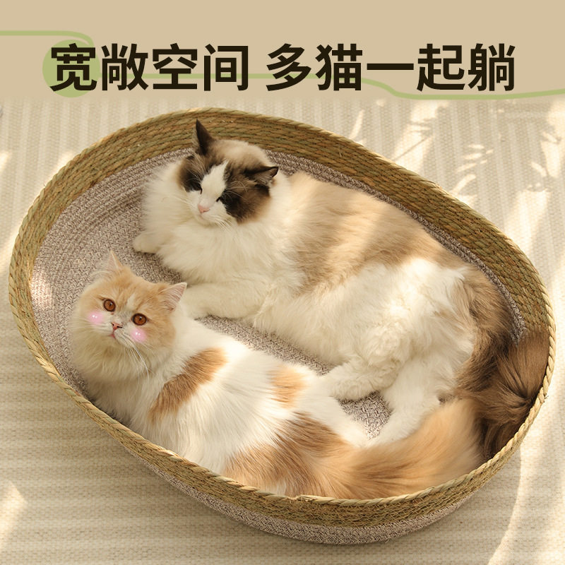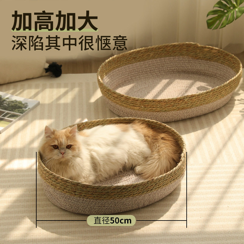 椭圆形藤编猫窝夏季清凉猫窝耐抓编织猫窝宠物编织床四季通用透气