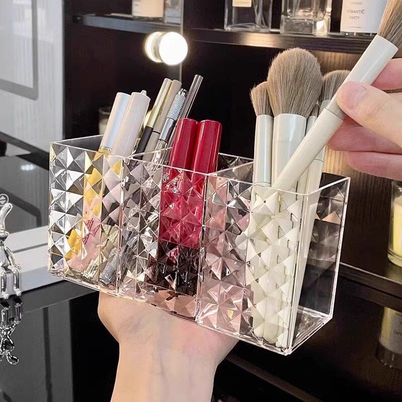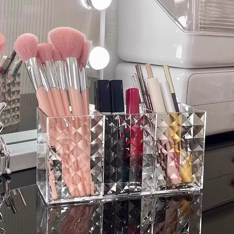 水乳化妆品办公桌收纳透明塑料盒子分格口红盒宿舍化妆刷桶笔筒