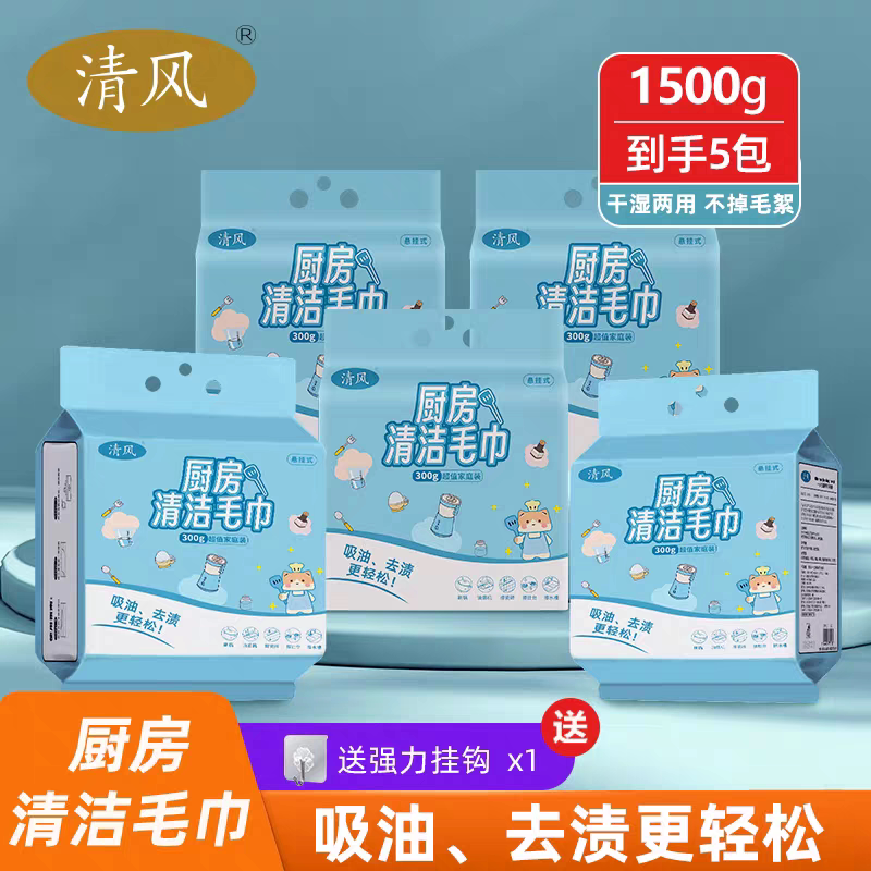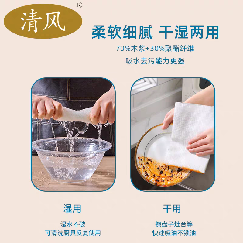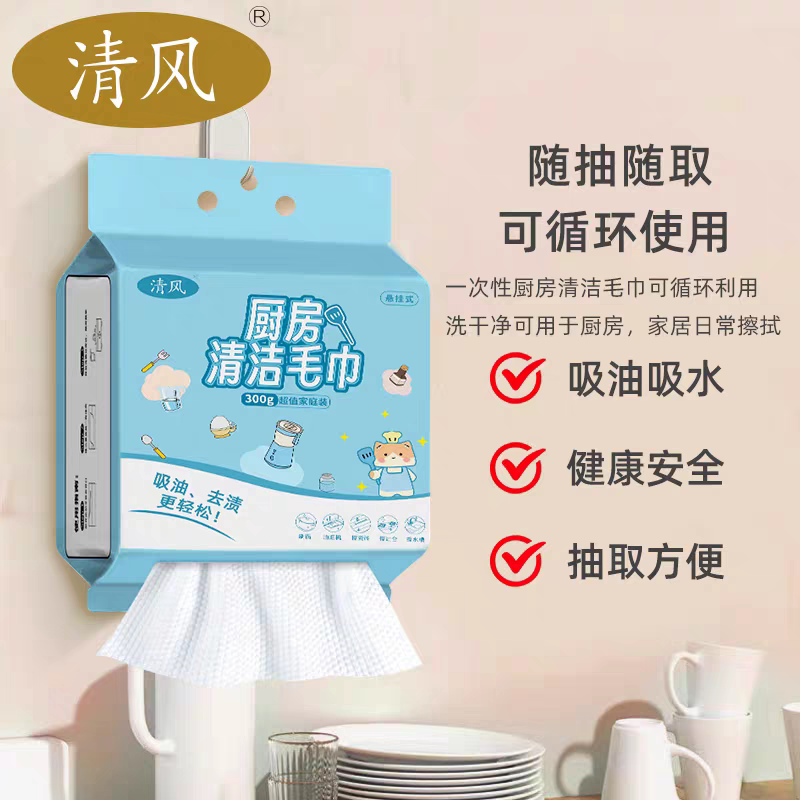 清风懒人抹布一次性厨房专用洗碗巾干湿两用加厚悬挂式擦油纸巾