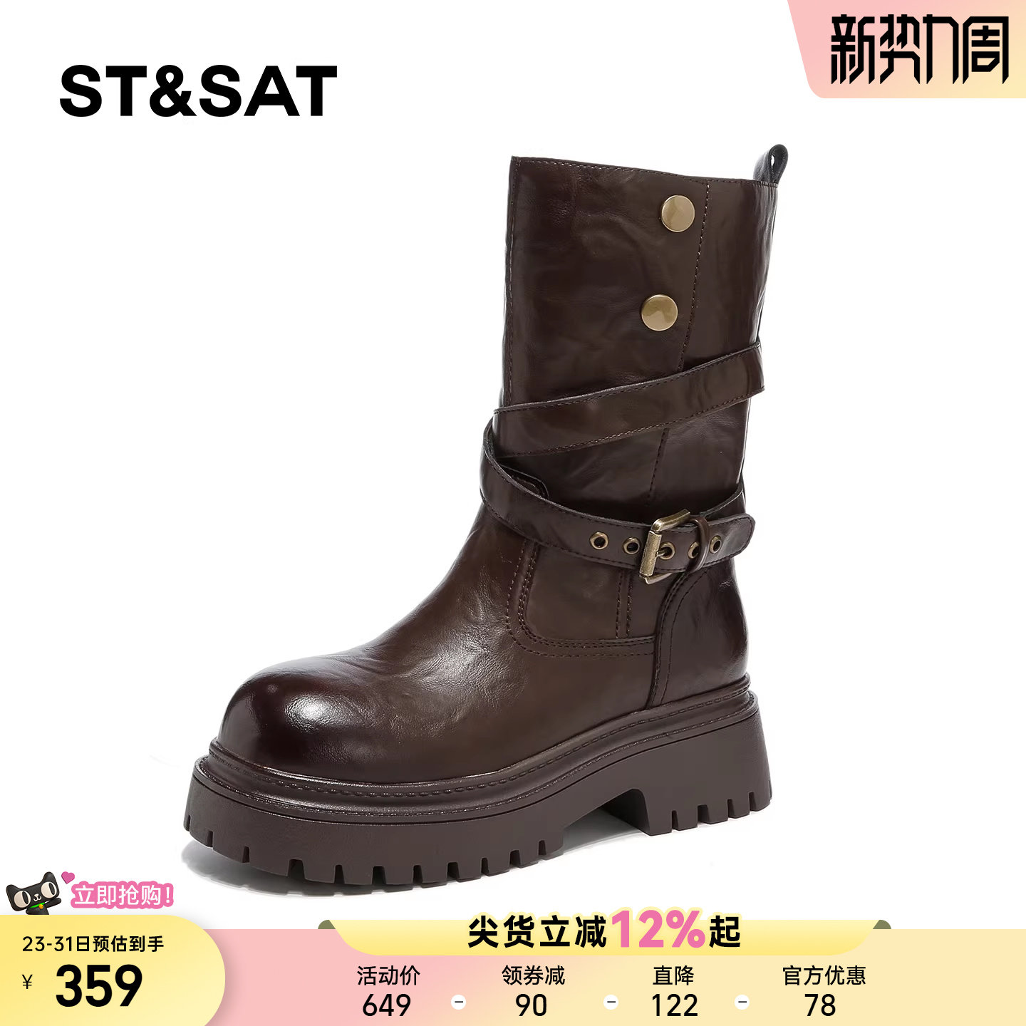 星期六厚底马丁靴女2025款春季英伦风复古美拉德中筒靴潮酷机车靴