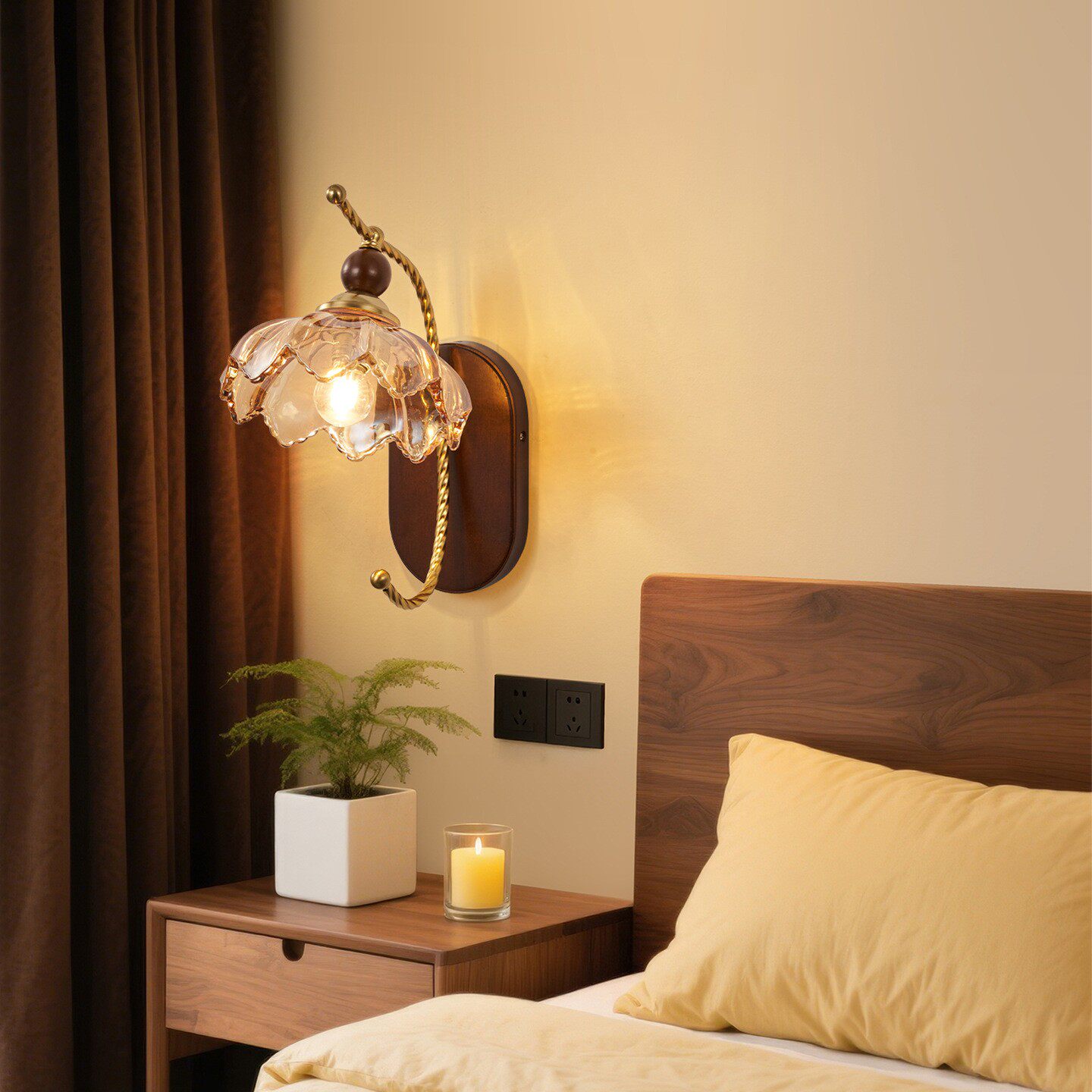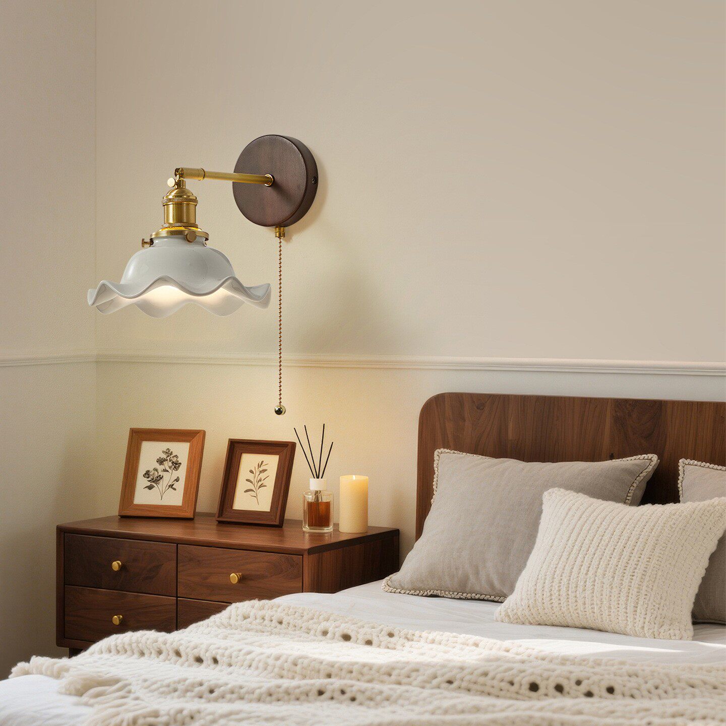 中古风壁灯复古实木带拉线开关客厅卧室床头侘寂风装饰灯背景墙灯