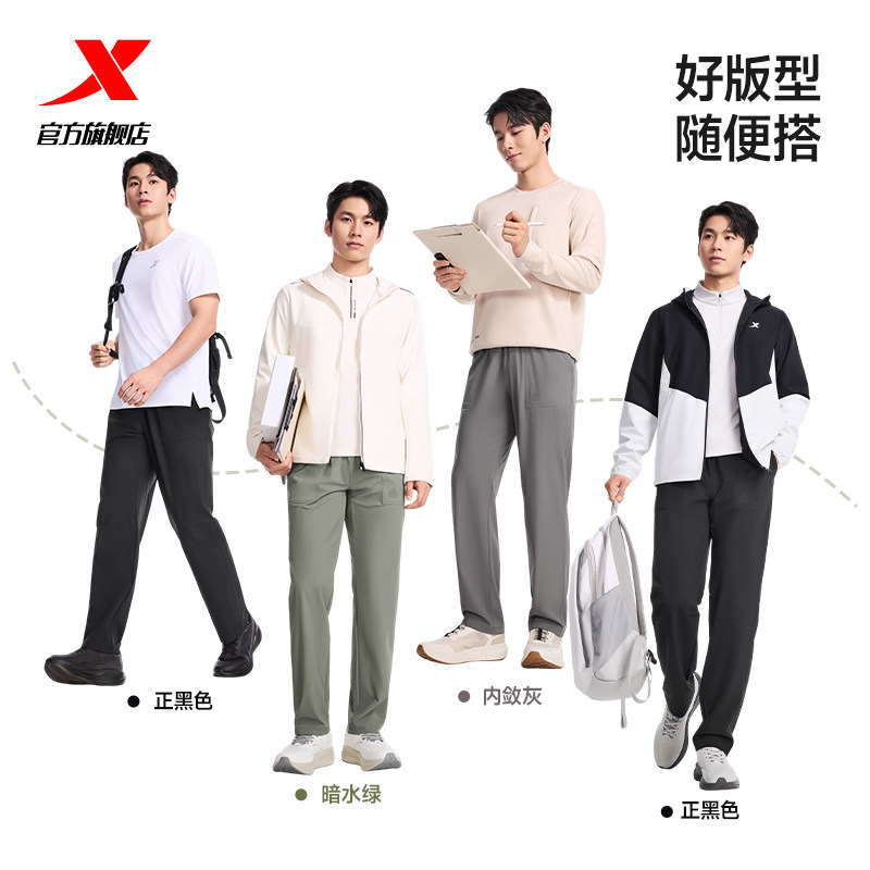 特步小C裤防泼水软壳裤春季运动裤梭织裤户外通勤长裤休闲裤男