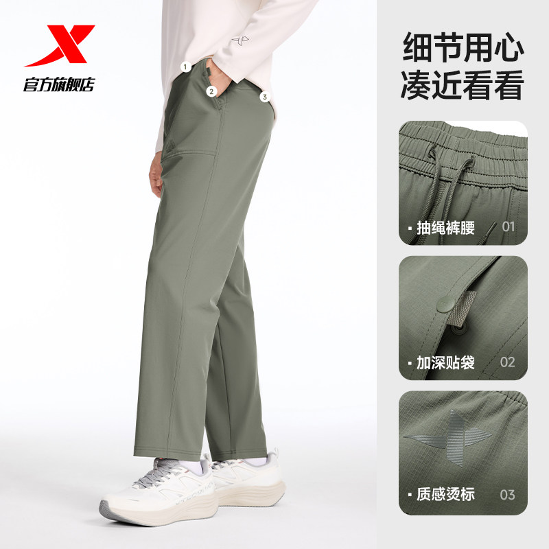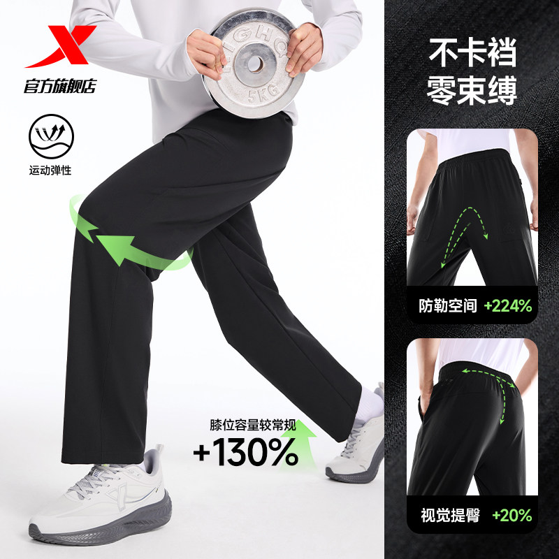 特步运动裤男裤夏季健身跑步裤子直筒凉感速干裤综训运动长裤男