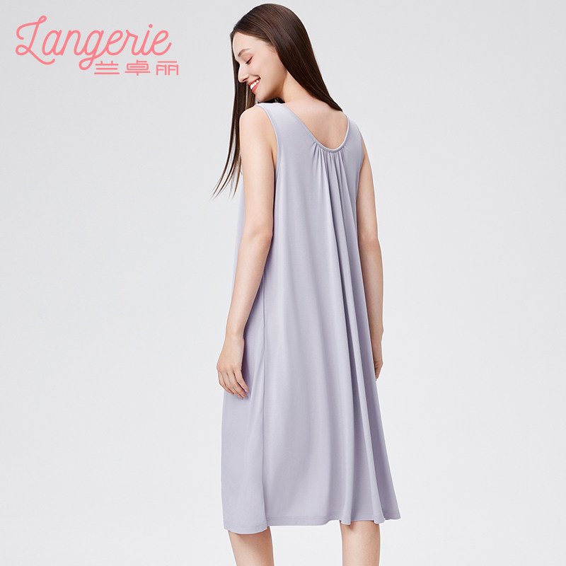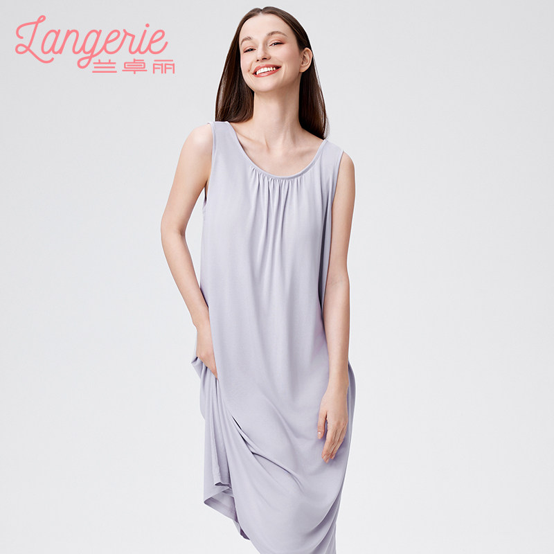 兰卓丽凉感睡裙女带胸垫防凸点性感睡衣宽松背心式家居服夏季睡衣