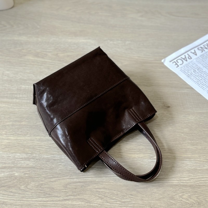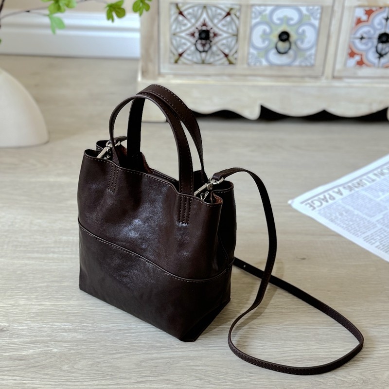 云水集真皮女包2025新款复古手提包水晶植鞣牛皮单肩斜挎包菜篮子