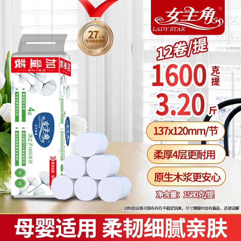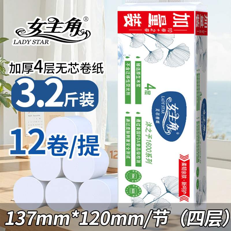 女主角卫生纸1600克无芯卷纸柔厚四层家庭实惠装厕所手纸母婴原生
