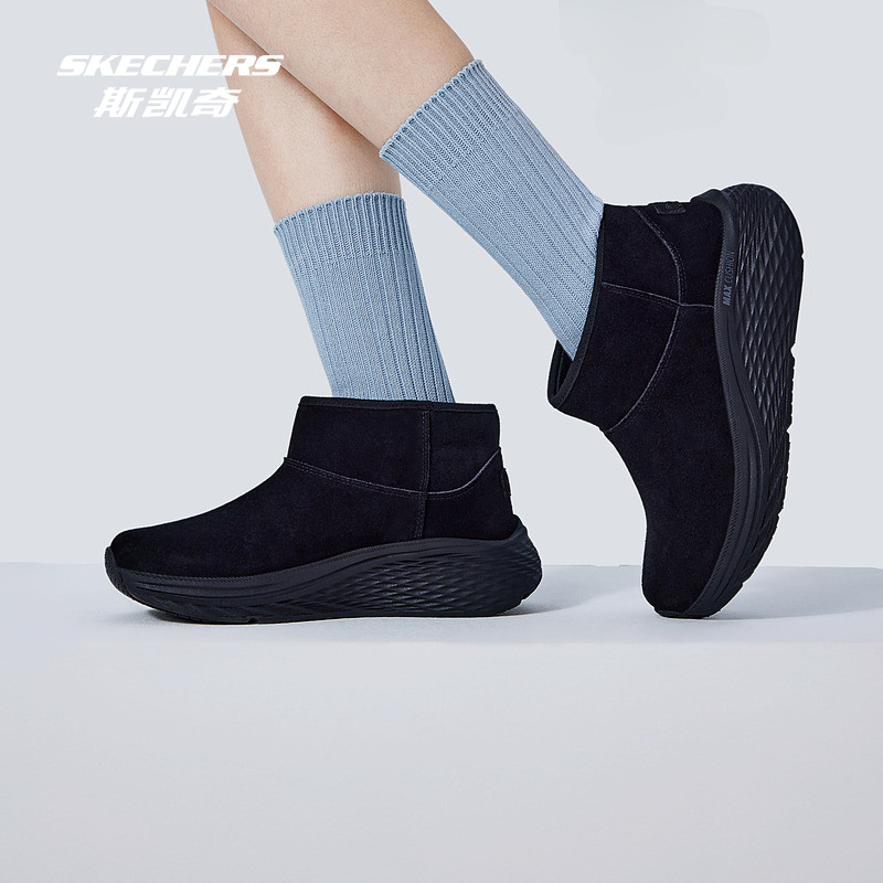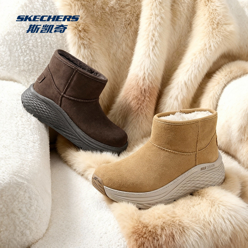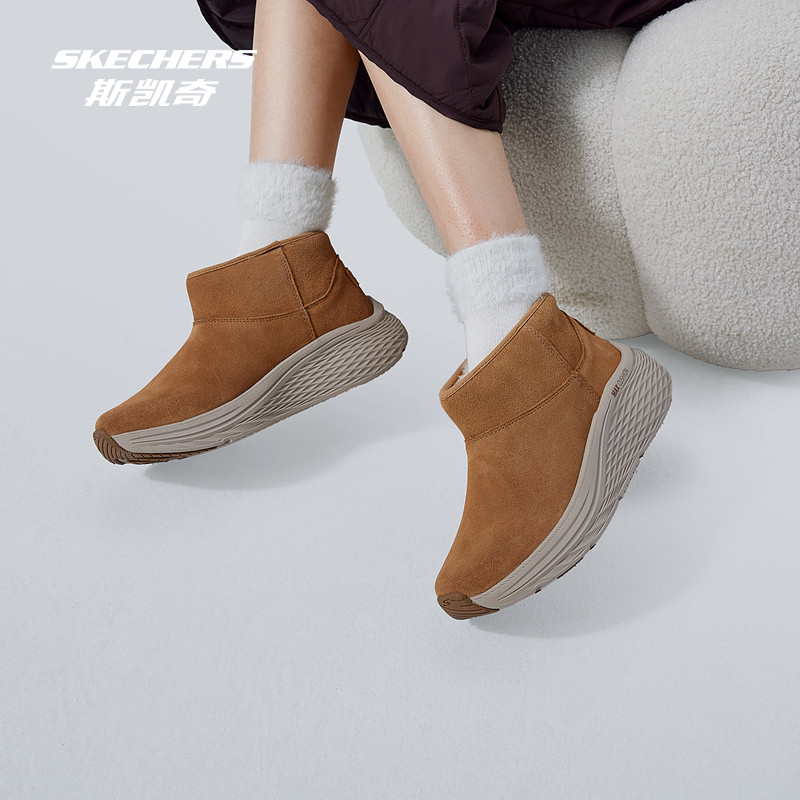 斯凯奇Outlets女士中帮雪地靴保暖耐磨栗色全黑加绒中高帮