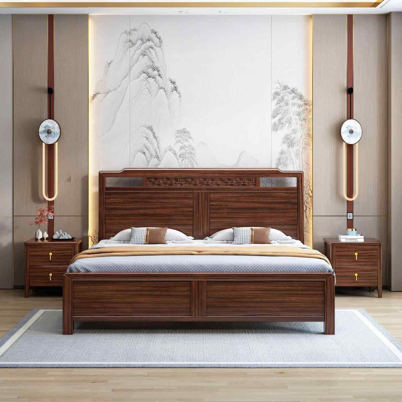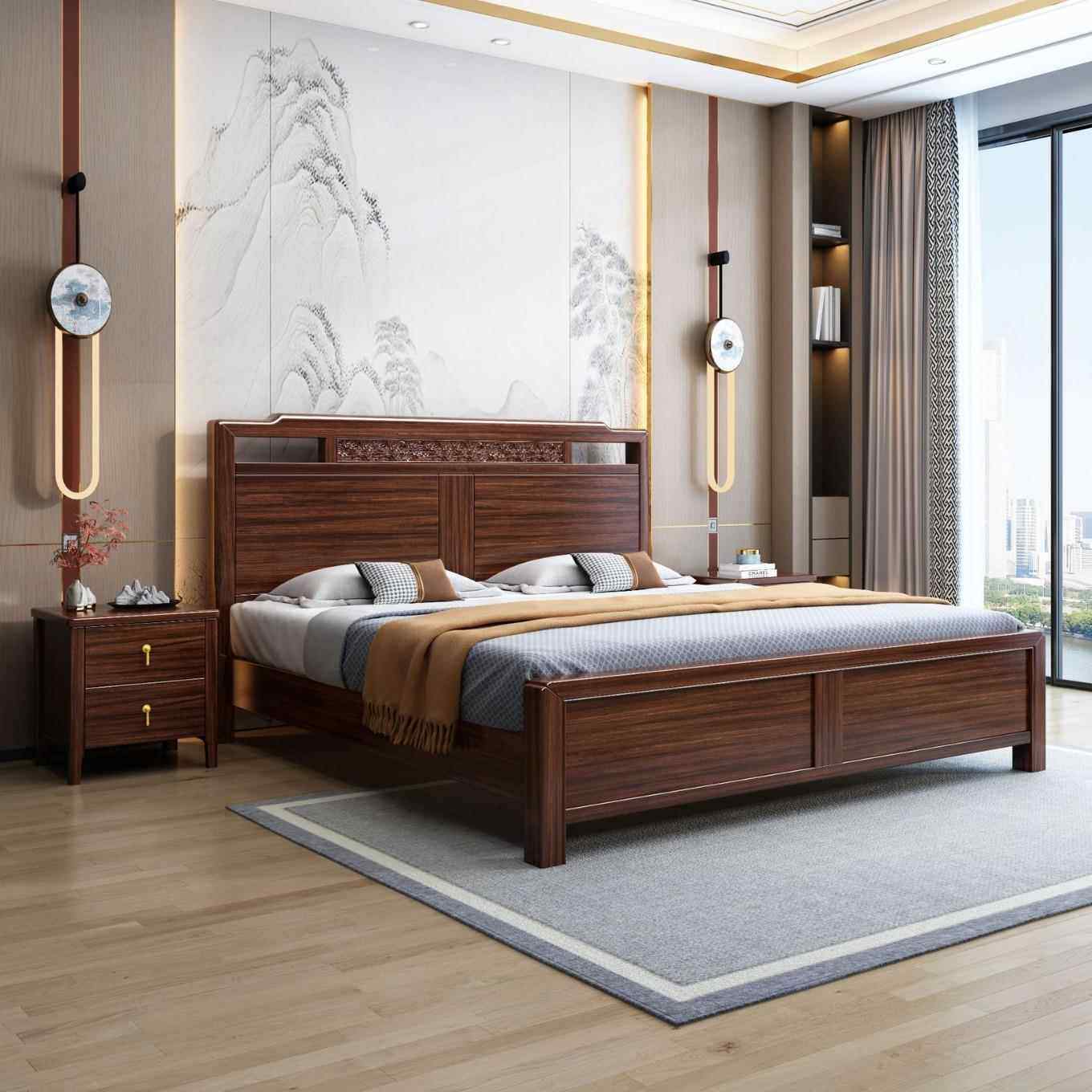 1.5m1.8米乌金木新中式实木床主卧婚床现代轻奢气压储物双人大床