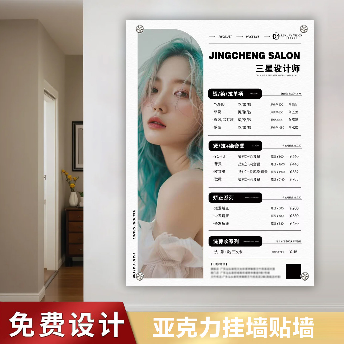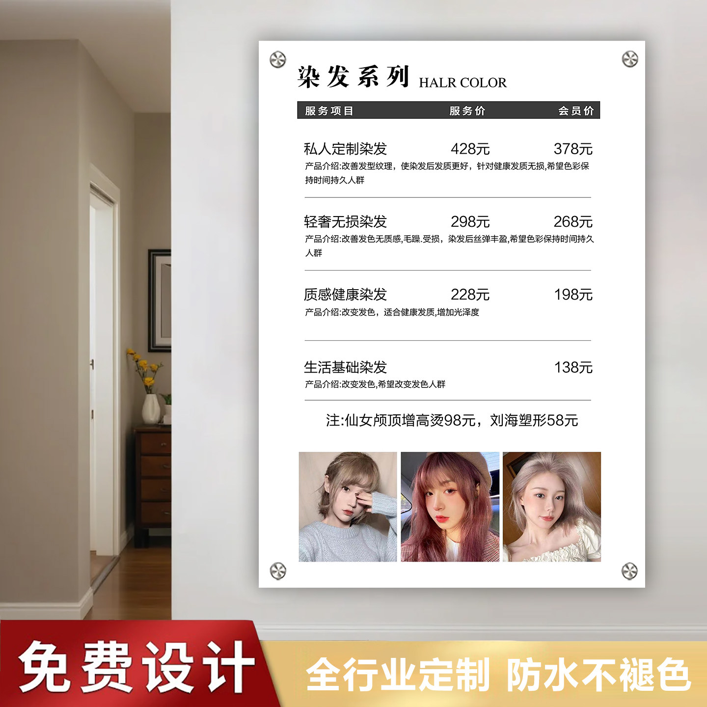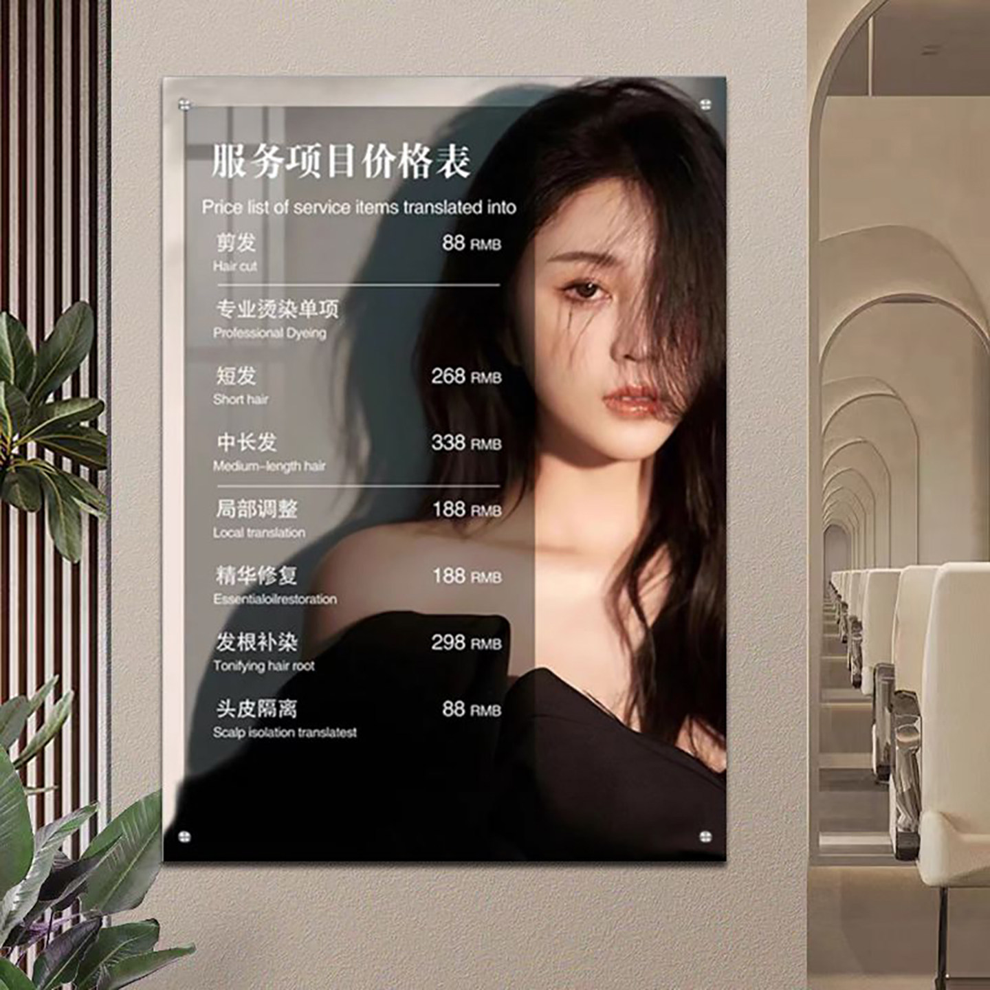亚克力美发店价目表定制美容院美甲纹绣充值价格表广告展示牌挂牌