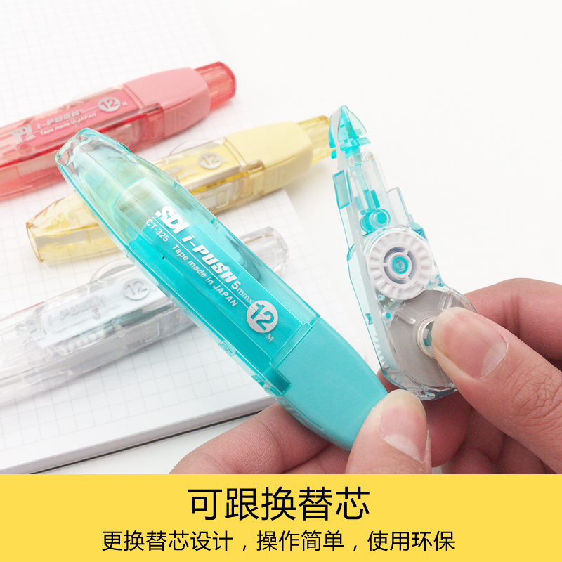 台湾SDI手牌修正带替芯CT-325大容量改正带通用315日本进口母带12m小学生用实惠装涂改带按动式消字带静音