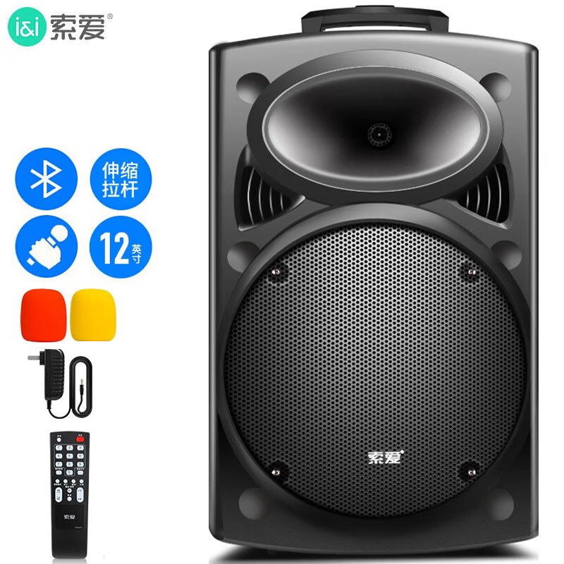索爱SA-T20广场舞12寸会议音响拉杆地推促销宣传跳操蓝牙拉杆音箱