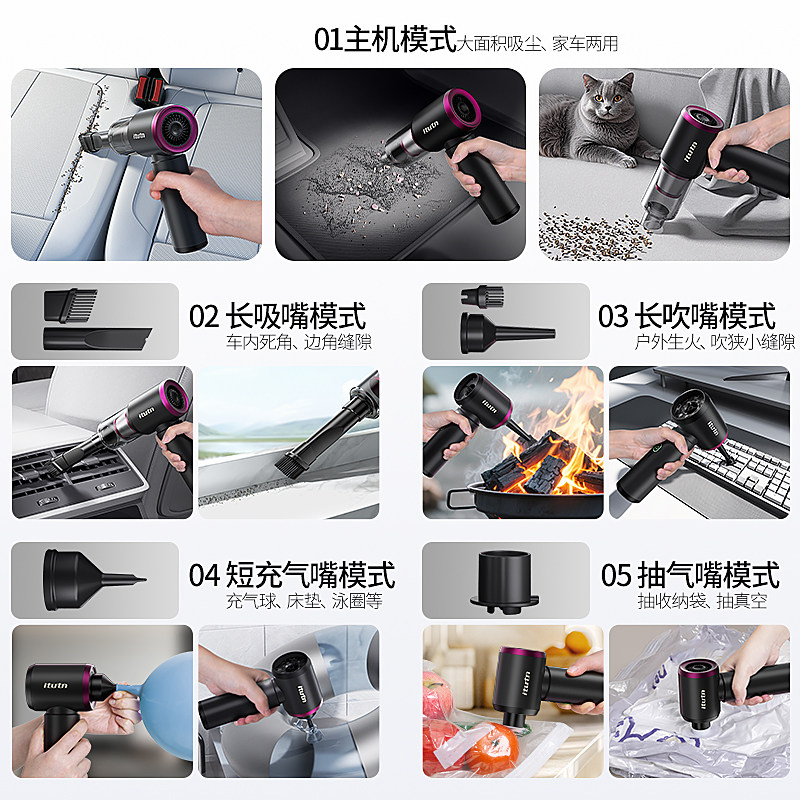 无线迷你 车家两用超大吸力 吸吹抽充四合一