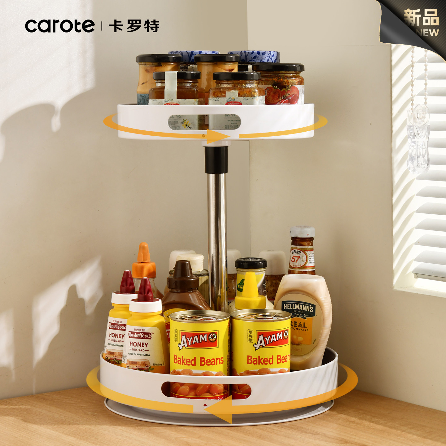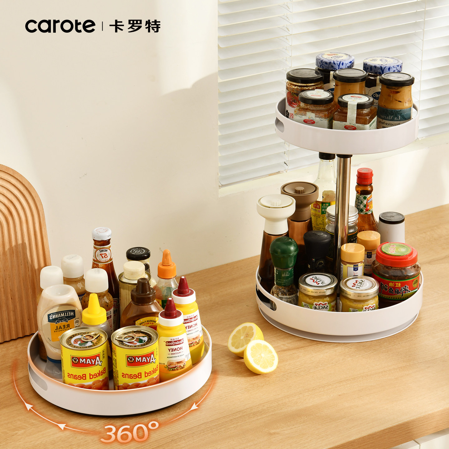 卡罗特旋转调料置物架厨房台面双层多功能托盘调料罐调料品收纳架